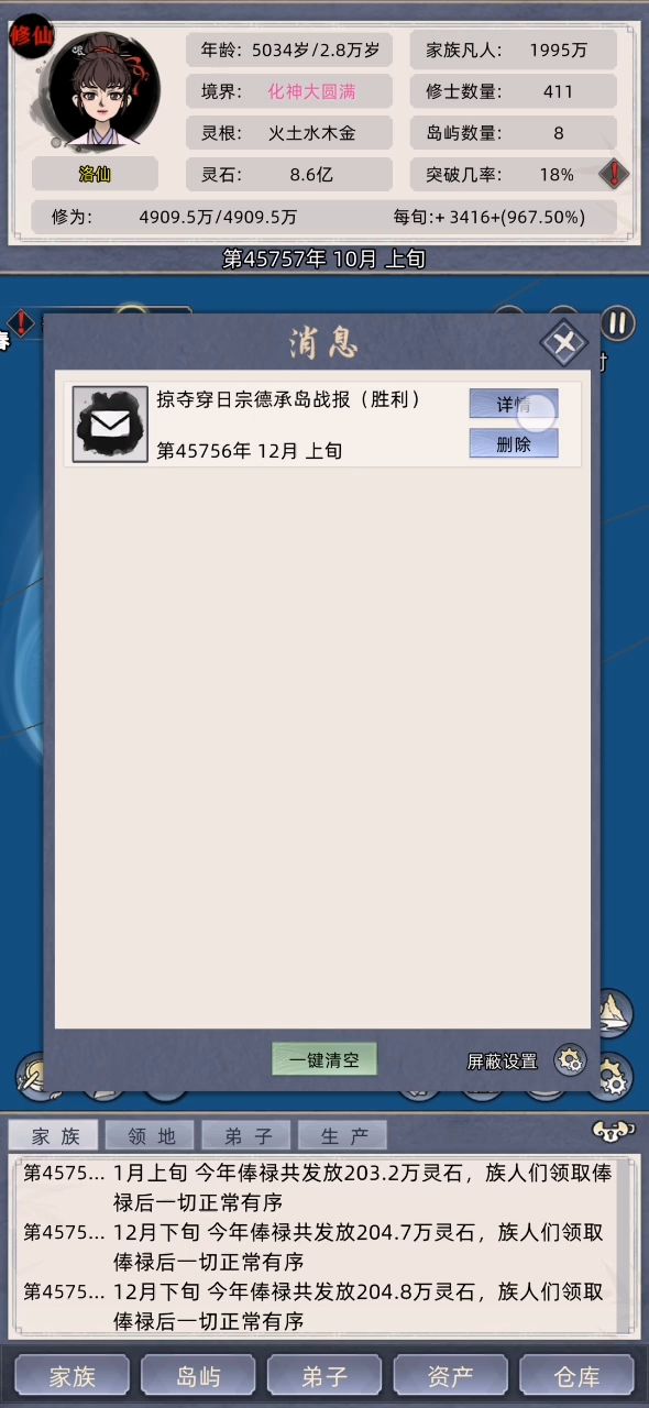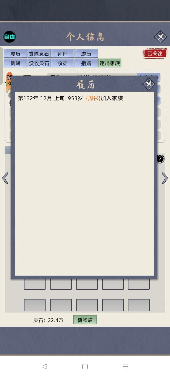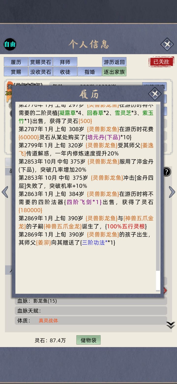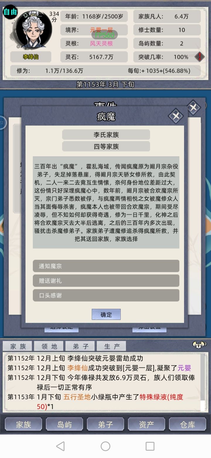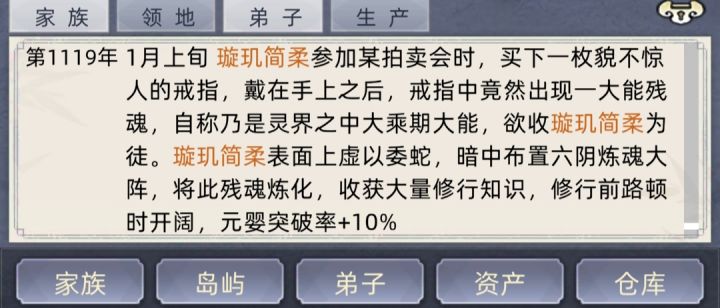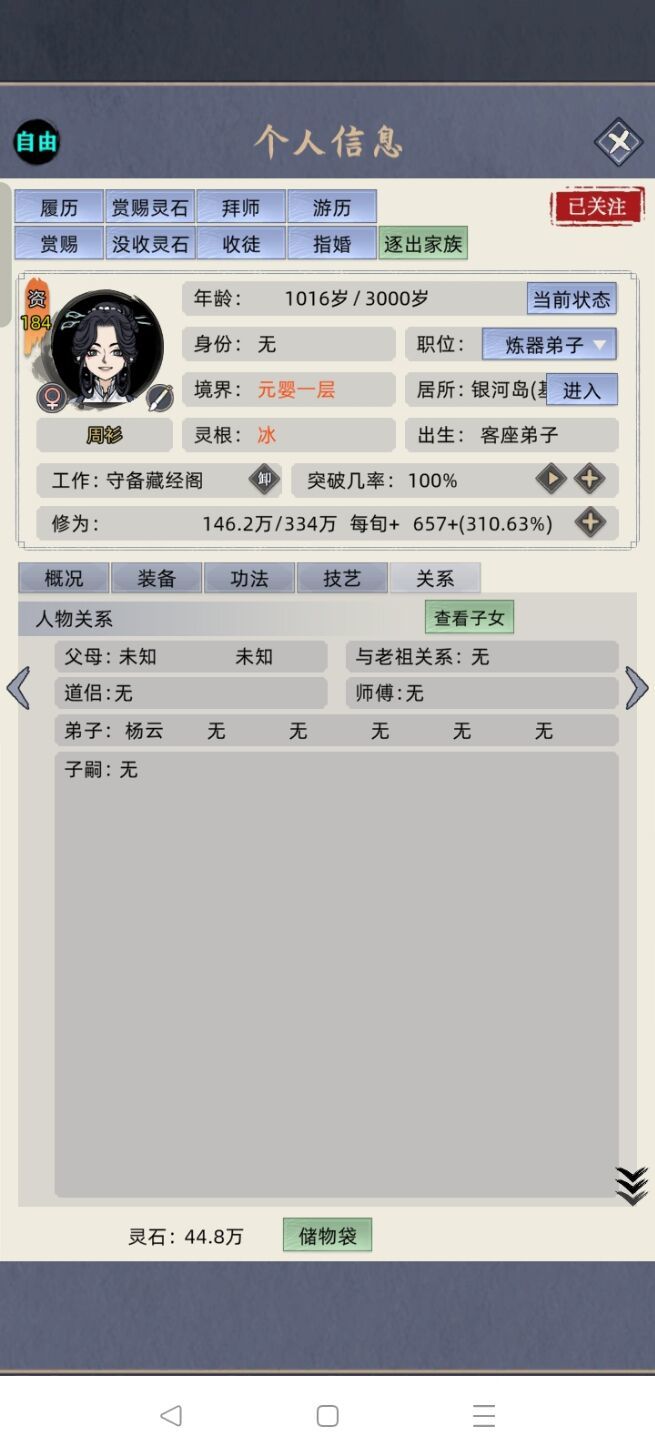 今天新开个挡,玩到一半就感觉有点不太对劲。发现灵石掉的好快,然后看了看弟子界面就发现不知道什么时候多了个元婴,好像还是老祖出去游历带回来的师傅。玩这么久第一次见直接带元婴回来的,有没有大佬来解释一下啊