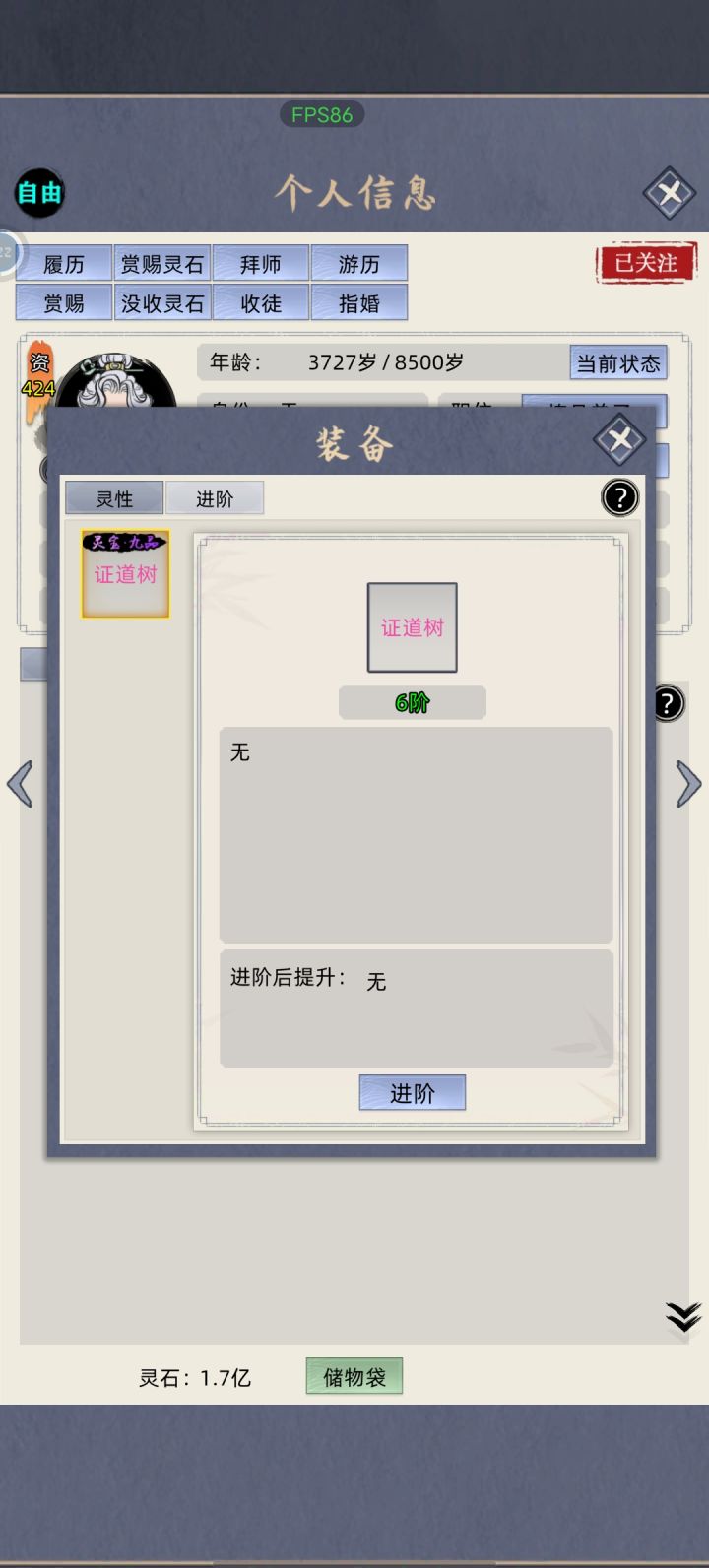 养了半天的树,突然发现无法进阶