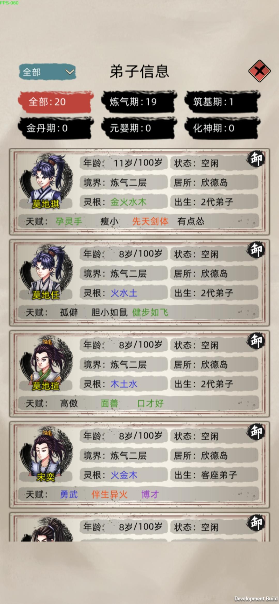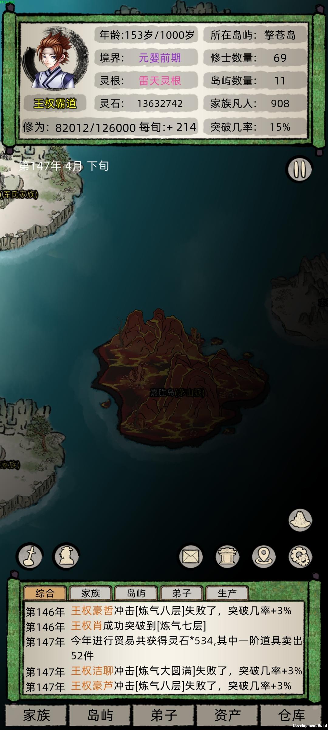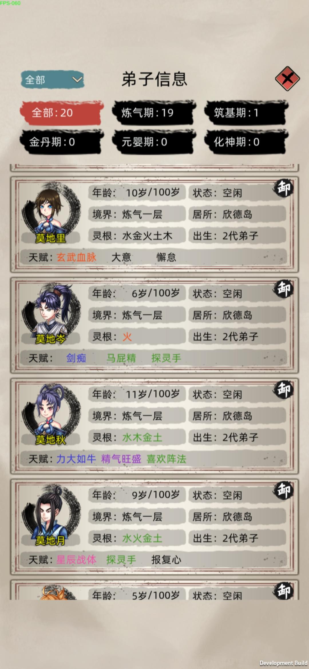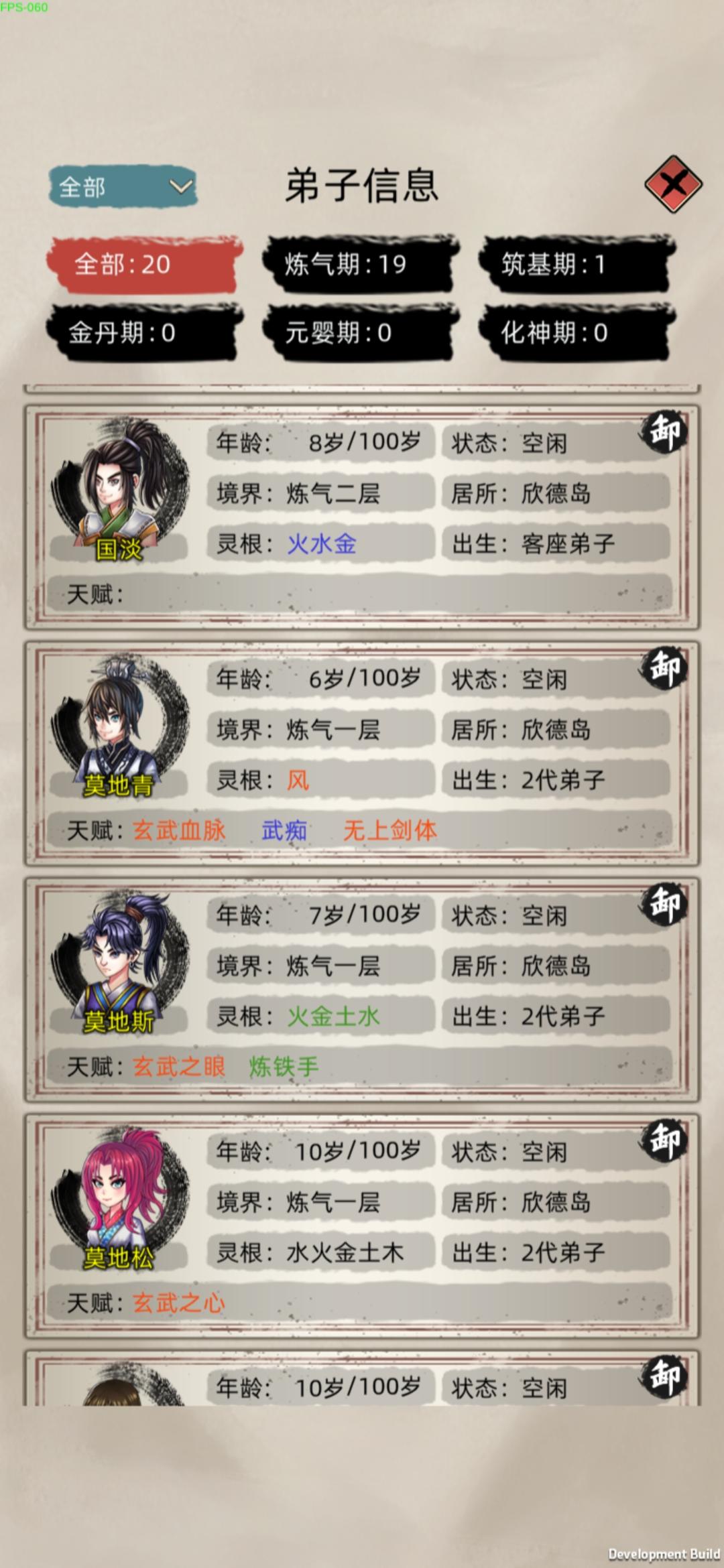 就是2.4这个版本让我玩的摔手机,修为老是暂停卡顿必须重进游戏才行,动不动就来元婴抢我筑基期的岛屿,之前的版本我玩了7天了都有3个元婴2个后期一个中期,功德也有4000多了后面加了群看更新了,就把游戏更新了后恶心的来了,卡顿修为暂停 时间还在跑,我以为是我的程序有问题我就卸载了重装,功德和存档都没有了,浪费了我几天的时间就因为这个烂版本,其实我很喜欢这种类型的游戏游戏模式我也很喜欢,看了这个宣传才来玩的,有几个建议希望官方优化,攻打别的岛屿选择弟子的时候能把境界分类选择吗,我每次打个小岛屿我得往下翻,还有给弟子吃东西的时候100个弟子往下翻我手都快翻抽筋了,能不能搞个境界分类和灵根选择,还有种田我得一个一个田地往上拉,我每攻打一个岛屿手拉的难受,能不能搞个点一下有4格6格9格的选择?还有一个问题就是选了岛屿自动派遣过去,能不能加个15人的选项,或者自定义,还有弟子过去后之前设置的自动任务不能自动进行,需要我每个都点一下才行,(我说的不是建筑类型的)