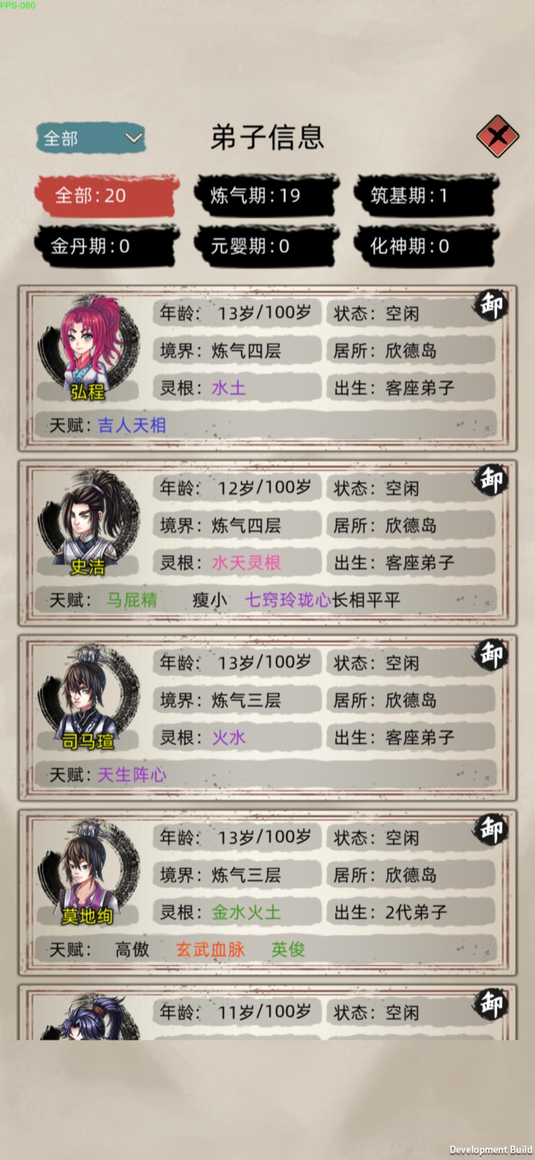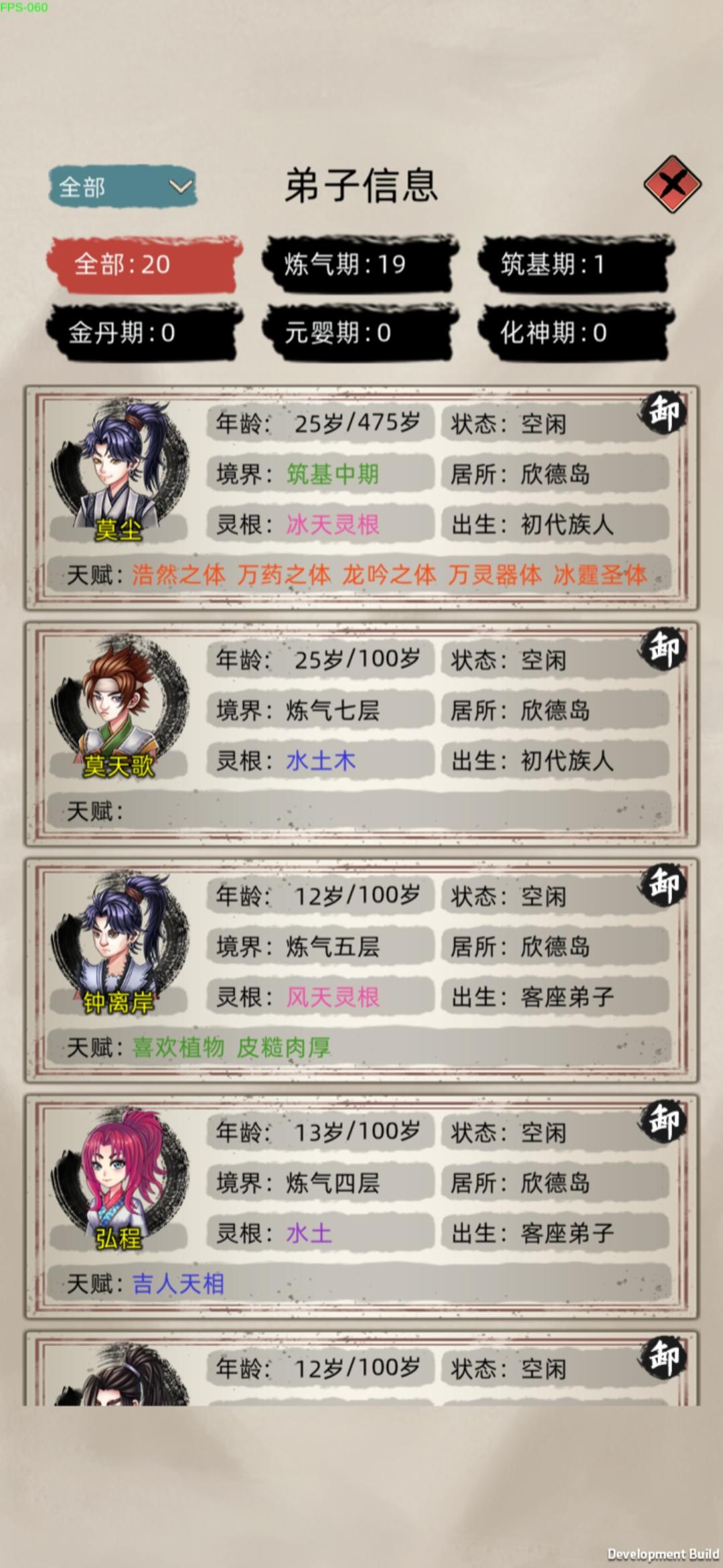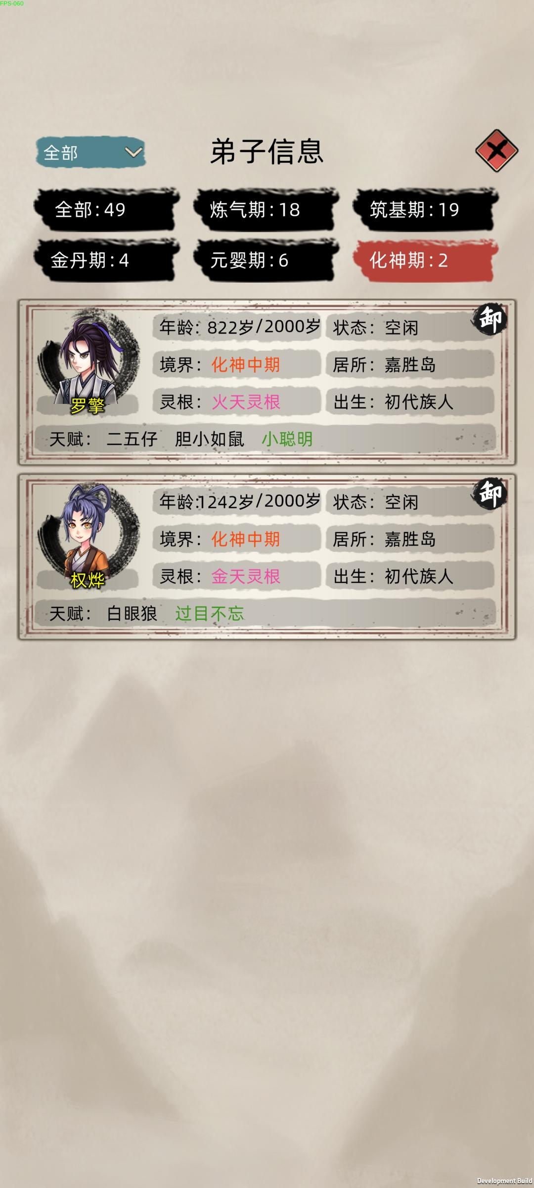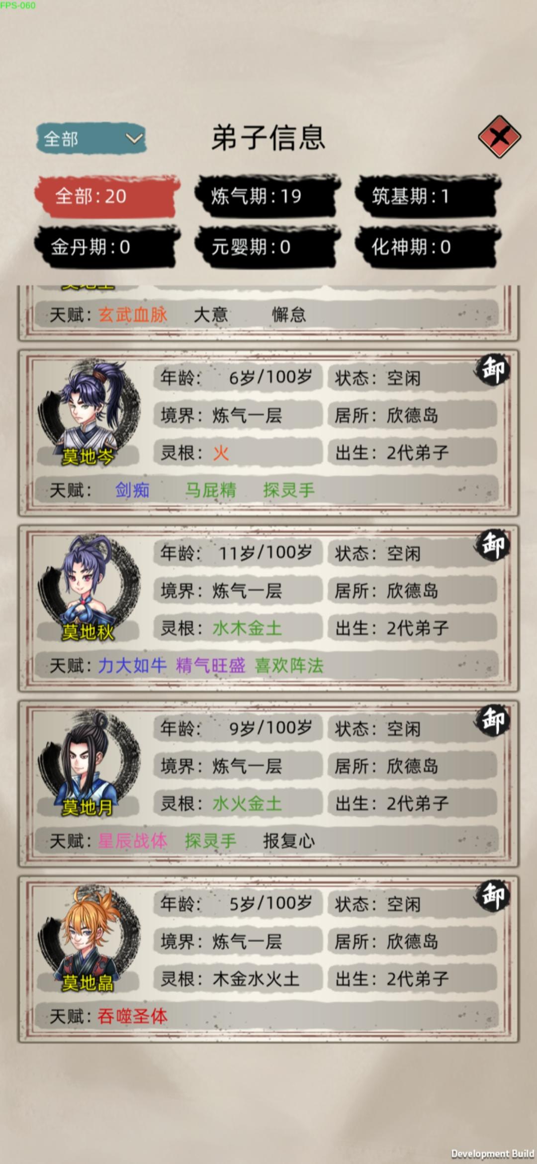 就是2.4这个版本让我玩的摔手机,修为老是暂停卡顿必须重进游戏才行,动不动就来元婴抢我筑基期的岛屿,之前的版本我玩了7天了都有3个元婴2个后期一个中期,功德也有4000多了后面加了群看更新了,就把游戏更新了后恶心的来了,卡顿修为暂停 时间还在跑,我以为是我的程序有问题我就卸载了重装,功德和存档都没有了,浪费了我几天的时间就因为这个烂版本,其实我很喜欢这种类型的游戏游戏模式我也很喜欢,看了这个宣传才来玩的,有几个建议希望官方优化,攻打别的岛屿选择弟子的时候能把境界分类选择吗,我每次打个小岛屿我得往下翻,还有给弟子吃东西的时候100个弟子往下翻我手都快翻抽筋了,能不能搞个境界分类和灵根选择,还有种田我得一个一个田地往上拉,我每攻打一个岛屿手拉的难受,能不能搞个点一下有4格6格9格的选择?还有一个问题就是选了岛屿自动派遣过去,能不能加个15人的选项,或者自定义,还有弟子过去后之前设置的自动任务不能自动进行,需要我每个都点一下才行,(我说的不是建筑类型的)