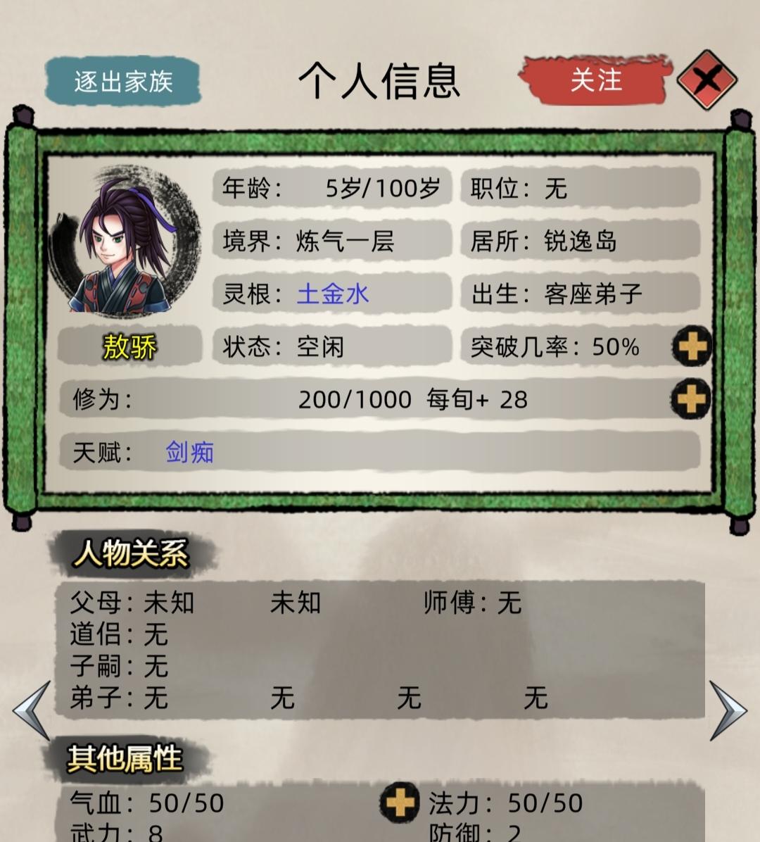 这个生孩继承天赋的概率是不是调低了?生了三个,可是天赋父母双方都没继承到,灵根也没,你这天赋好歹沾个边吧,真怀疑是不是捡来的!👿😓