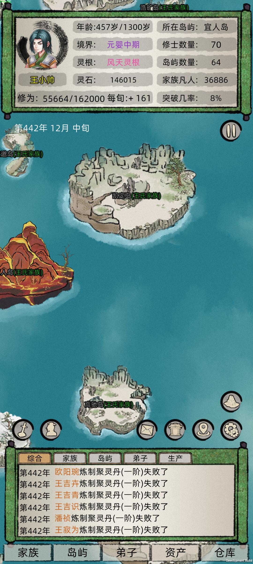 正常玩不sl四百年才出来一个元婴算正常吗?话说我藏金阁一堆浩然正气,日月乾坤工,混元功之类加修炼的功法,不是传说可以批量金丹吗?这才出了四个还都是天灵根才能突破上来的,我这是不是玩崩了😓,周围其他家族已经一堆元婴化神了贼可怕,杀了我好几个天灵根弟子了(明明一打过来我就立马让他们转移到隔壁岛但还是死了),感觉快要灭族了