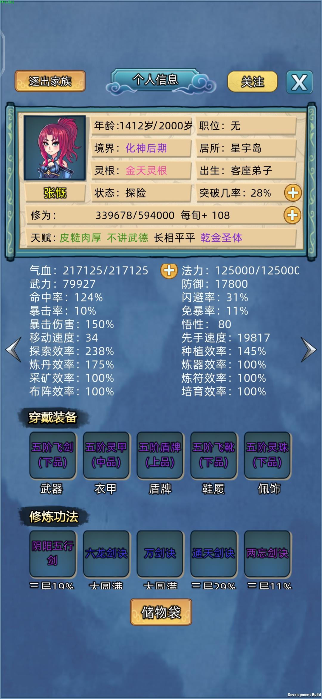 顾氏家族修仙传2 神劫历129985年,顾氏家族1592年。家族为了应劫,千年来,收集了5套五阶装备,总共炼制了7颗化神丹,收集到的四阶功法8部,已有万年世家之基。