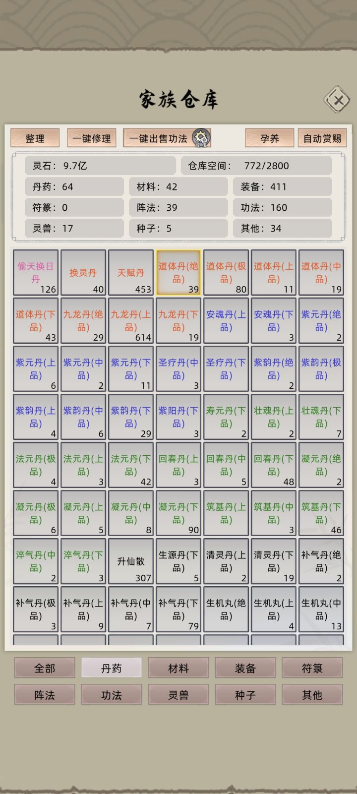 等三件传家宝练好,直接开冲修仙全成就