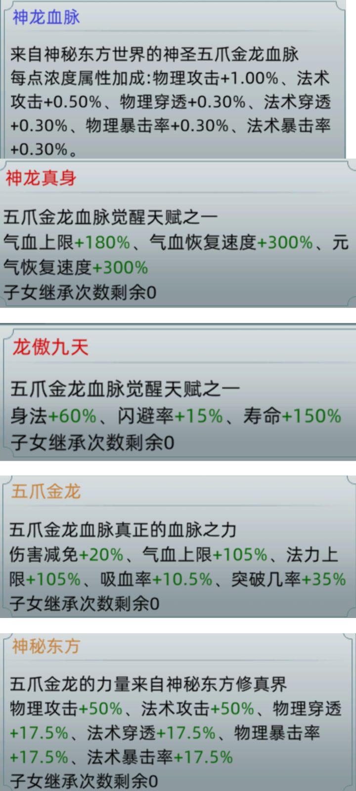 包含7大真灵血脉和神龙,来自steam端截图,跟手游9.9相同