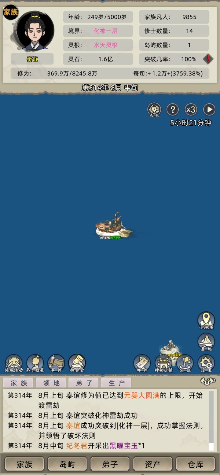 1.先把商铺搞满,赚钱。修仙历:转世之后,携带所有至宝重修,以飞舟为家,纵横四海,在12位化神大圆满的道侣帮助下,开始征战修仙界。9.7版本还行,后续要是没有重大更新就暂时不更新版本了。征服不了了,为什么?9.7版本毁灭了,准备新的档吧。1.地图编辑一下,放多一点巨型灵脉吞噬2.把商铺,洞府,交易所都设置满。3.找到一个产六级材料的巨岛,然后守着刷。4.创造好12位道侣。5.还