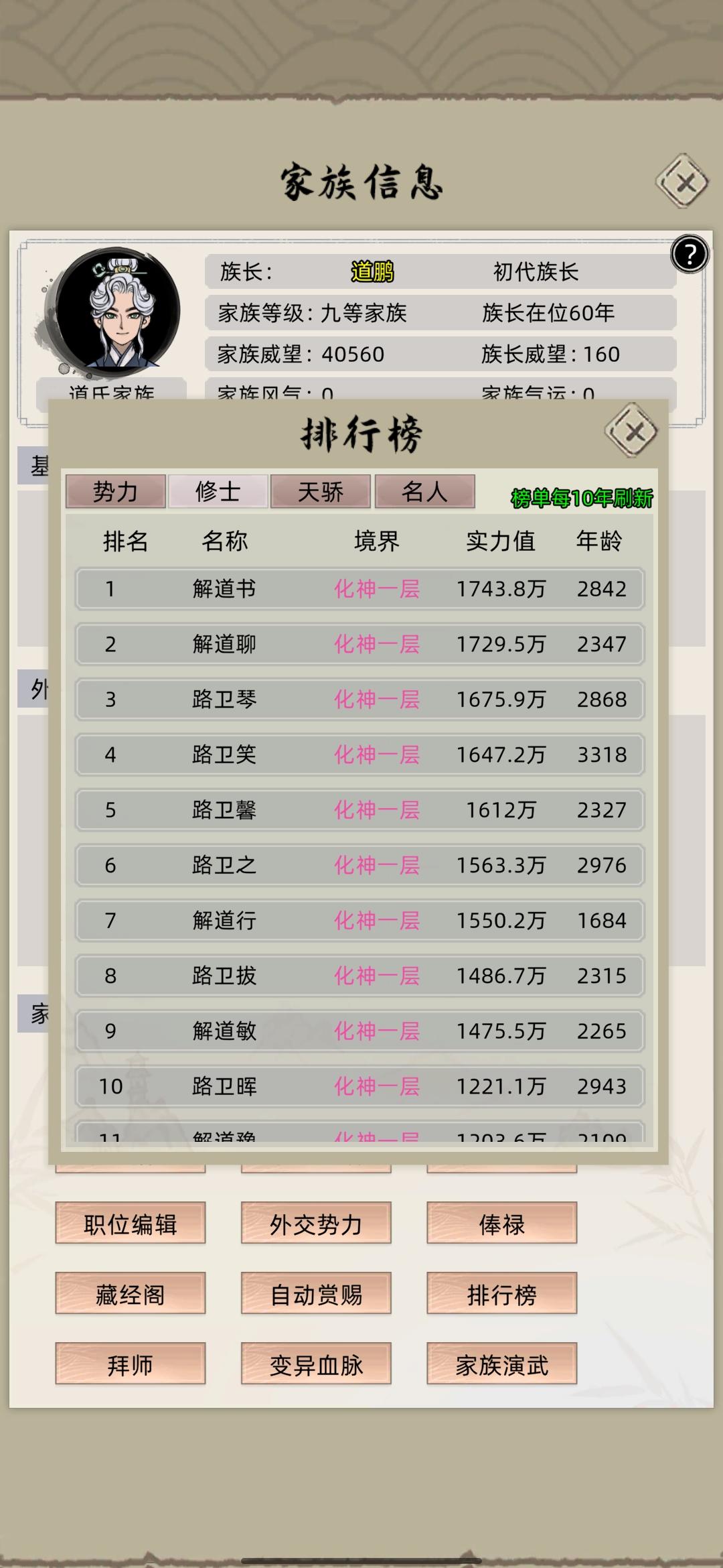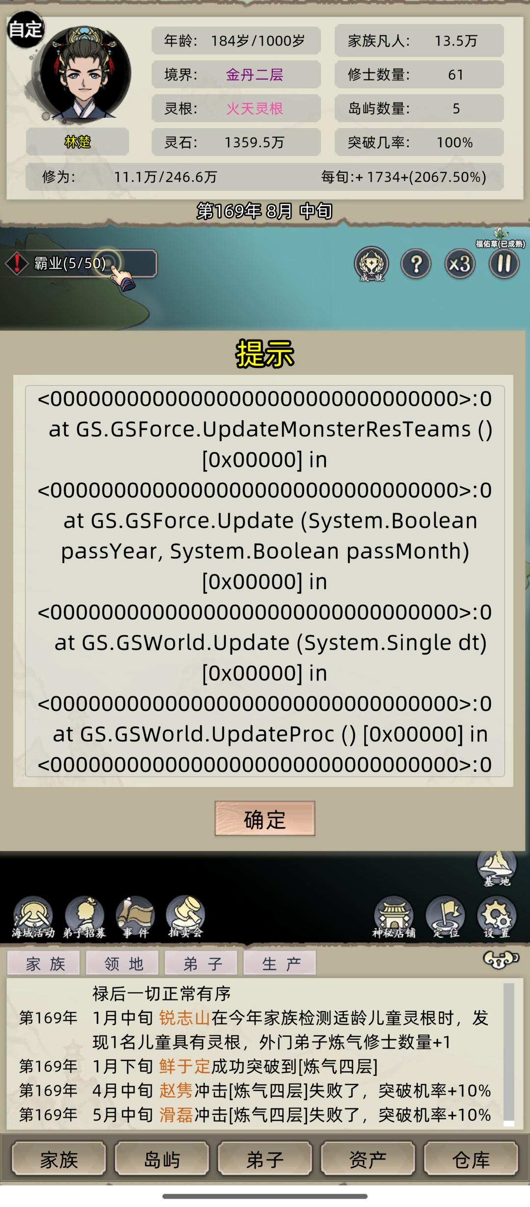 这个问这个问题什么时候才能解决呀?每次玩着玩着就这样了。#bug反馈 #建议反馈 #修仙家族模拟器
