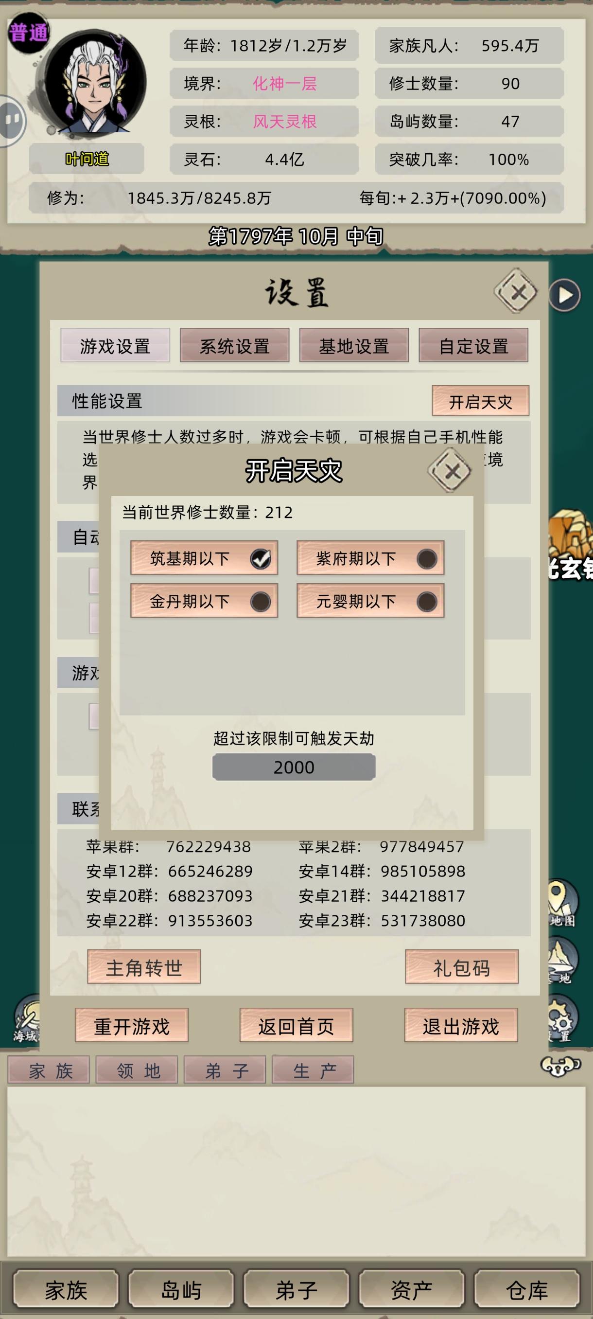 这次主要征集!严重影响游戏体验的bug!会坏档的bug!严重影响游戏体验的bug!会坏档的bug!严重影响游戏体验的bug!会坏档的bug!(其他的也可以提,能否修复不确定)目前已确定bug有:1.拍卖/采集/挖矿弟子中途死亡导致的乱码弹窗bug。2.道体丹与已有体质显示冲突导致的道体丹消失bug。3.海兽攻岛成功后不占岛导致的外门/散修数量异常增加bug。时间有限,只能征集24