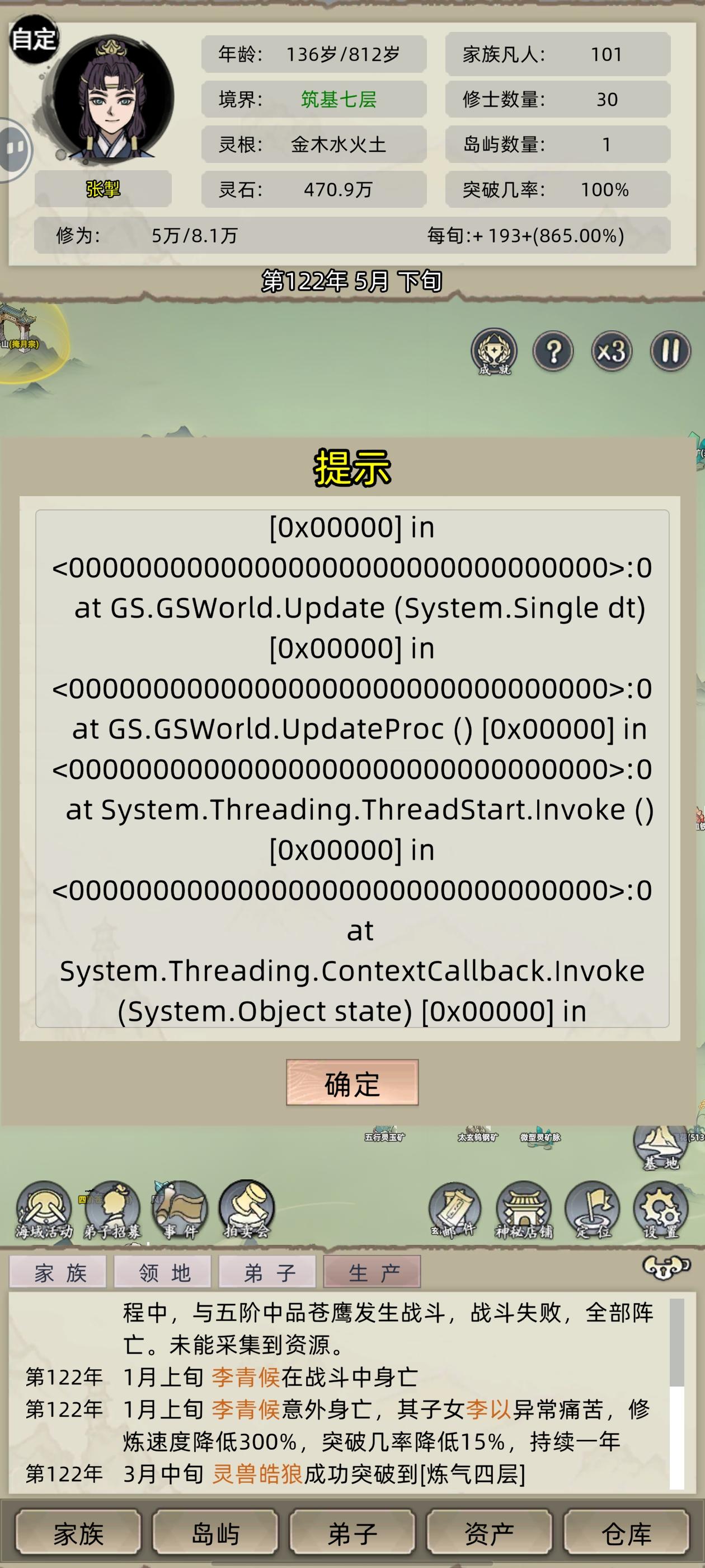 采集前保存,然后sl,一旦采集人死了,就会跳这个bug,昨天是李青侯,今天是另外一个真灵血脉普通后代。不知道是不是跟后代有关系,反正都是采集失败就跳bug,成功或者受伤就不跳。