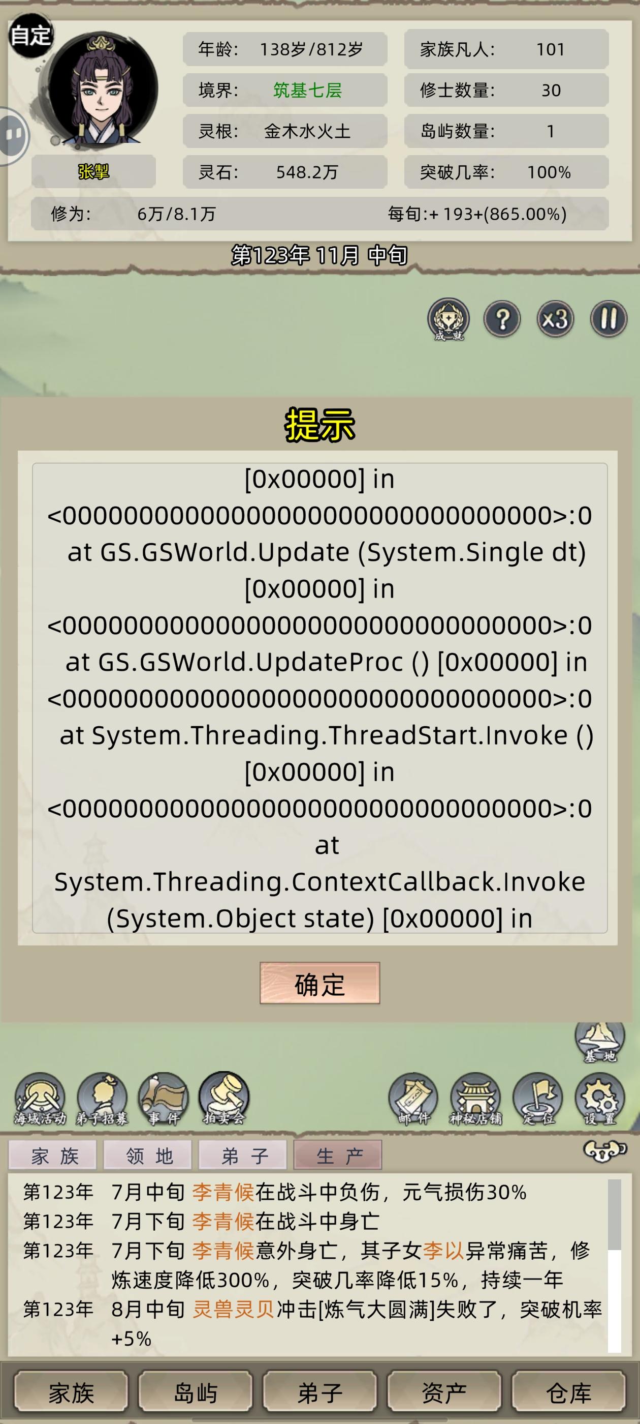 主修功法遗忘了,神通还在,点击神通之后出现了这bug页面,赶紧修复吧。一个好游戏,bug一堆。