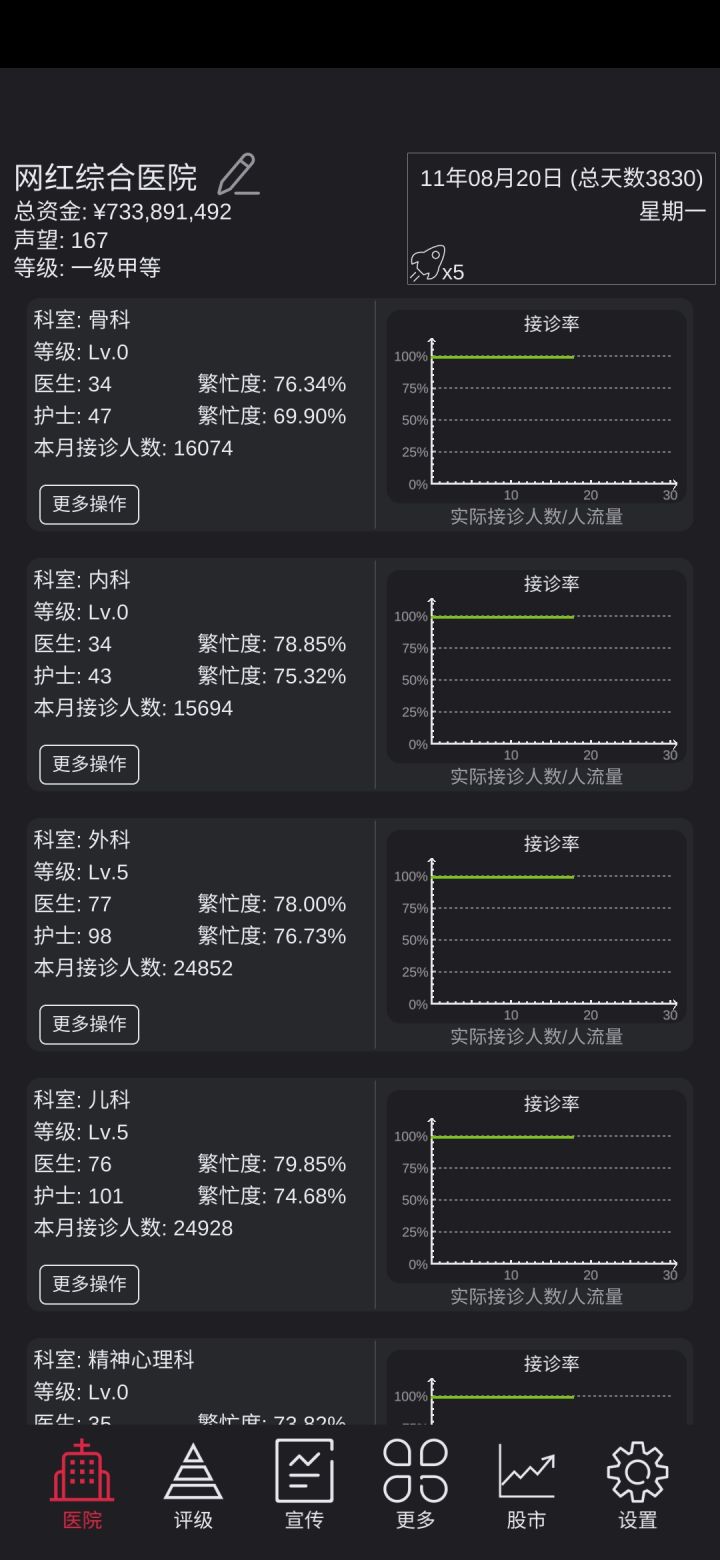 尽快把里面的设施弄起来,差点东西,像什么安保部,人事部,护士科,我才玩了一个多小时就已经弄起来了,游戏很不错,再把这几个部门弄起来就好玩多了。😝😝