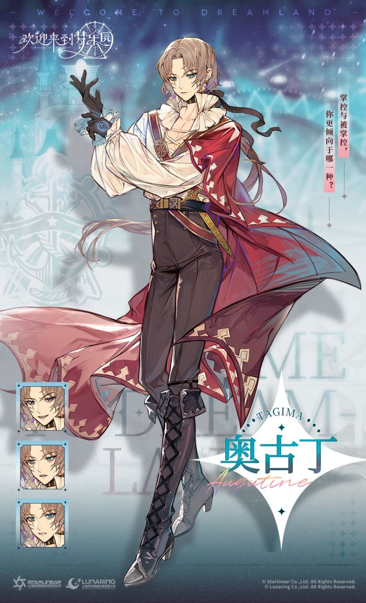 ⭐角色丨奥古丁“掌控与被掌控,你更倾向于哪一种?”第一眼见到奥古丁总是让人很难相信他和阿尔瓦罗竟然是一伙的,看上去一副优雅贵公子的模样,让人不由自主地心生好感、放下警惕,然后难以置信地被他夺走珍贵的宝物——“别轻易被所谓的温柔蒙蔽双眼。掠夺是人类的天性。”⭐欢迎关注我们的官方账号,获取更多新鲜资讯。官方微博:官网预约:官方微信:欢迎来到梦乐园官方4群:514056809