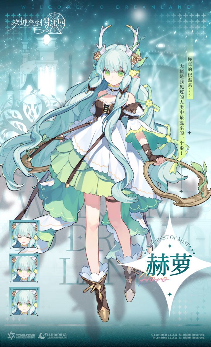 ⭐角色丨赫萝“你真的很温柔……大概是我见过的人类中最温柔的一个啦!”活泼又元气的鹿族少女赫萝,轻灵得像永盛花原清新的晨露,令人心旷神怡。如果她不说一些“难忘”的恐怖故事的话就更好了!⭐欢迎关注我们的官方账号,获取更多新鲜资讯。官方微博:官网预约:官方微信:欢迎来到梦乐园官方4群:514056809