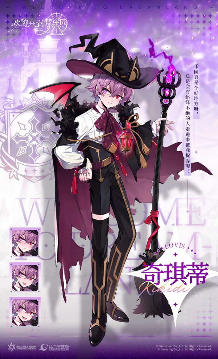 ⭐角色丨奇琪蒂“乐园真是个好地方呀,总是会有络绎不绝的人走进来被我捉弄呢!”传说暗夜里不仅有危险,还有奇琪蒂——深红馆中唯一的男性巫师,外表看起来还算可爱,实际上是个对外隐藏自己真实身份,喜欢捉弄“猎物”,如同蝙蝠一般昼伏夜出的小恶魔。换句话说,如果不想被奇琪蒂抓住,那就不要熬夜,早些休息。⭐欢迎关注我们的官方账号,获取更多新鲜资讯。官方微博:官网预约:官方微信:欢迎来到梦乐园官方4