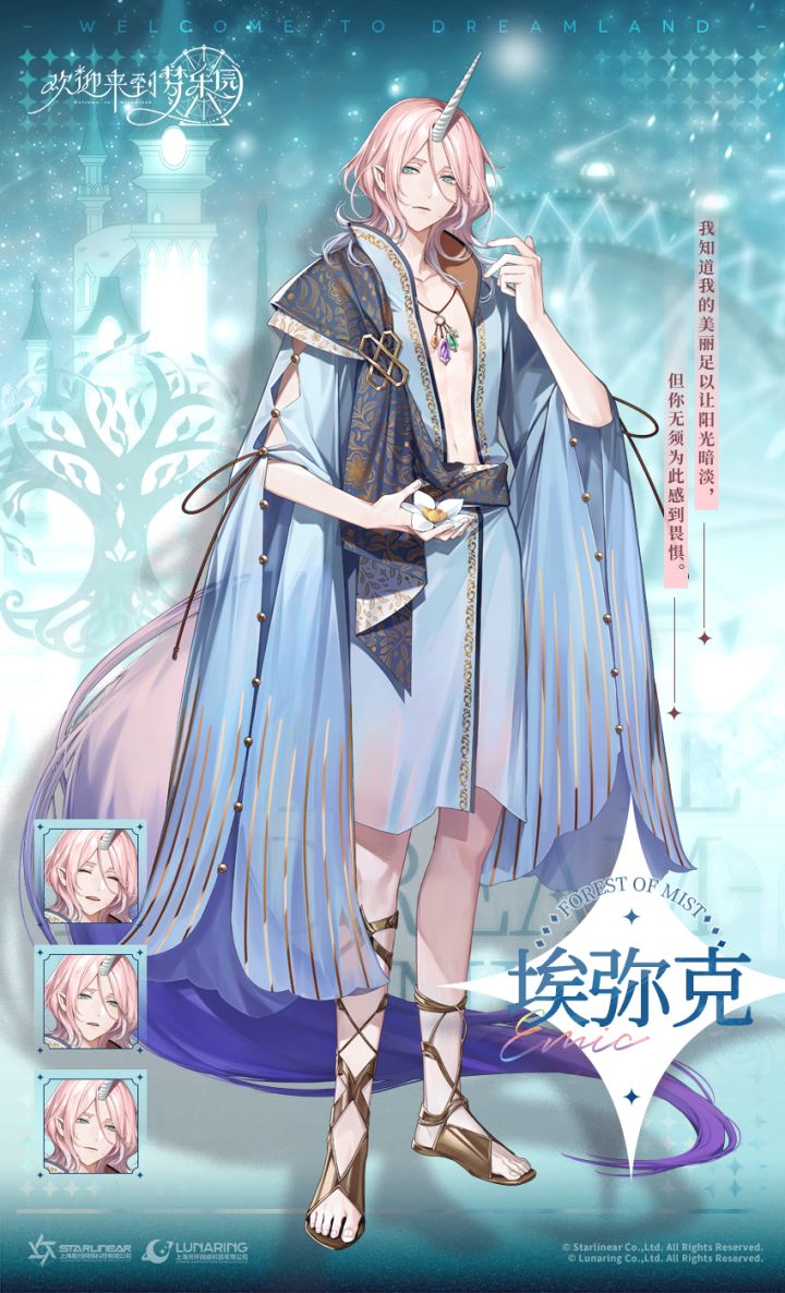 ⭐角色丨埃弥克“我知道我的美丽足以让阳光暗淡,但你无须为此感到畏惧。”用“自恋”也不足以形容的家伙。当人们对上他的眼睛时,一切似乎又变得理所当然。他伏在泉水边忧郁的身影,让人想起关于水仙花的传说故事。那种对美貌的极度自信和极致追求,在梦乐园里也许再找不到第二个这样的人了。⭐欢迎关注我们的官方账号,获取更多新鲜资讯。官方微博:官网预约:官方微信:欢迎来到梦乐园官方4群:51405680
