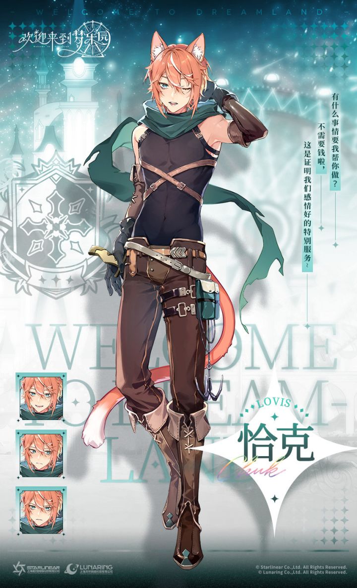 ⭐角色丨恰克“有什么事情要我帮你做?不需要钱啦,这是证明我们感情好的特别服务~”在去过洛维斯之后,一份应聘“试吃员”的面试登记卡悄无声息地出现在梦乐园的办公桌上:应聘者居无定所、四处游走、身世成谜,特长和兴趣爱好也让人捉摸不透,不过他对于这份工作的渴求倒是毫不掩饰——“没有人比我更会吃白饭了。”⭐欢迎关注我们的官方账号,获取更多新鲜资讯。官方微博:官方微信:欢迎来到梦乐园官方3群:67