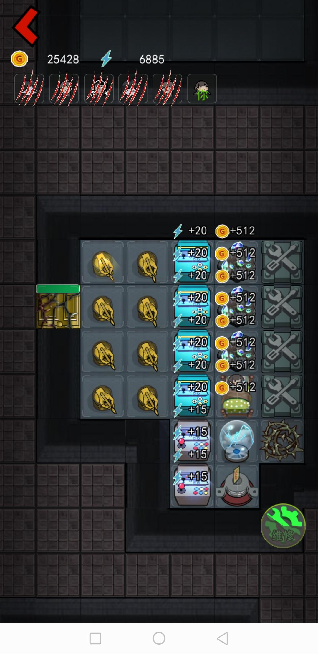 这游戏,振金门3级,鬼12级就扛不住了,13级秒破,虽然我12级就被秒了,炮台都来不及升级武器升的高又怕把他打死(古董游戏机四台,钻石矿 6个,无敌罩子,冰箱,提款机,一阶段红炮8门,二阶段红炮4门)伤害高鬼升级慢,但是一旦升级你输出不够门秒破,输出高了鬼挠两下就跑路了。。。养鬼不可行,终究会被反噬,刚玩几天还可以,久了挺没意思的