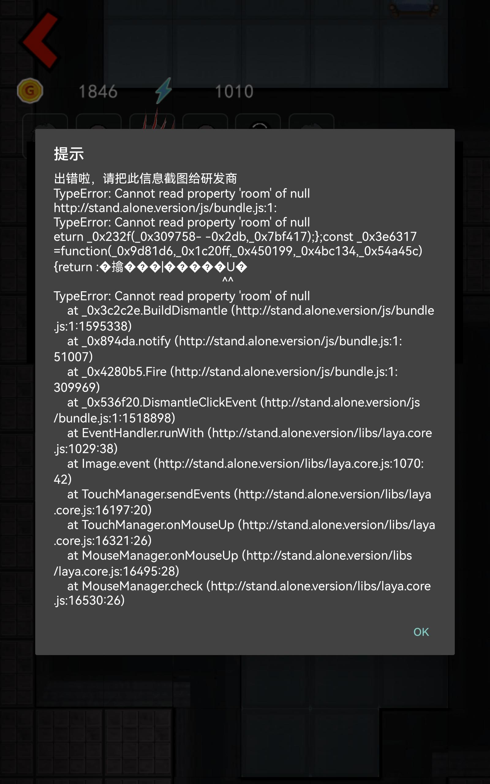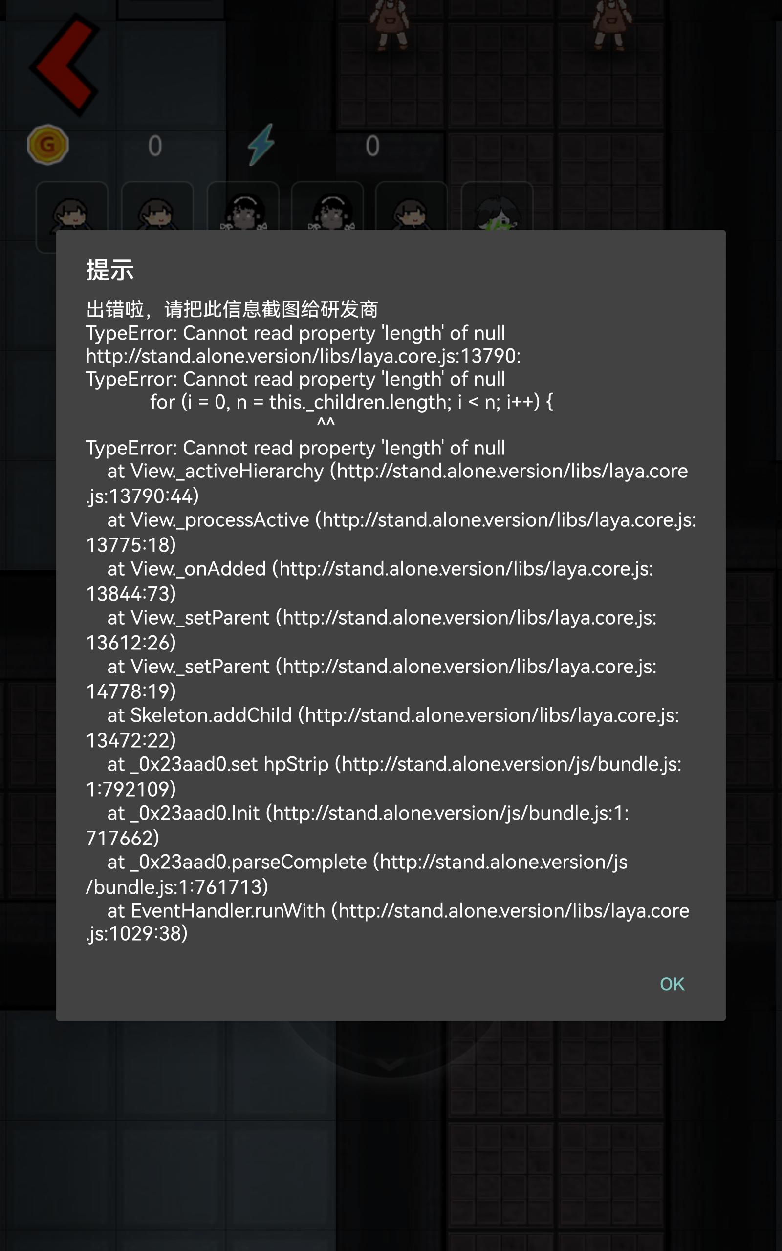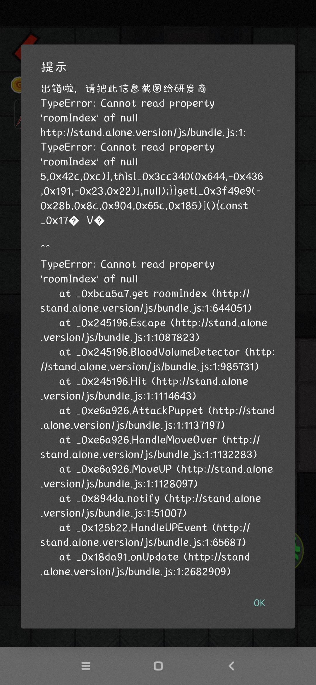 伥鬼模式会发生这种闪退情况,游戏很好玩,希望能早点修复bug