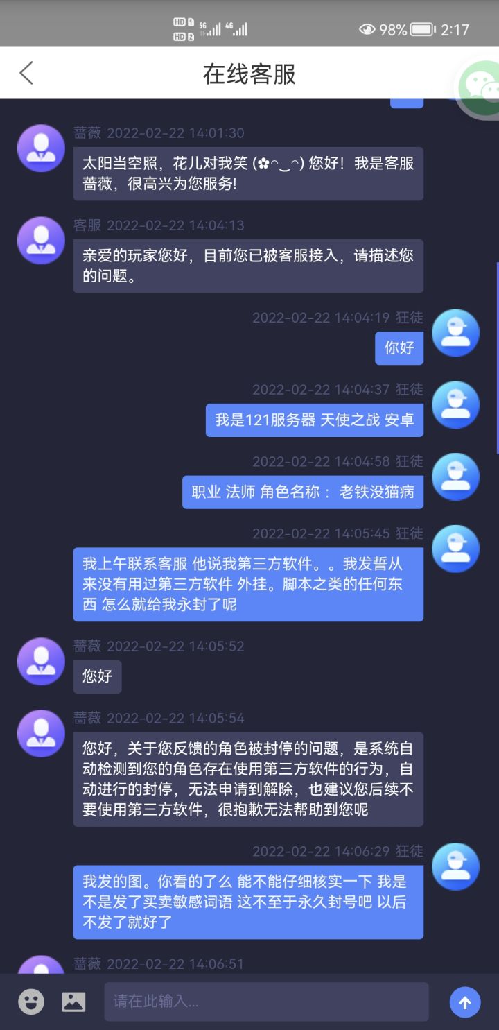 天使之战 安卓 零氪金 一直都是手动玩游戏 从来没用过脚本 把我永封了 身上还有450万币 装备值1500万币 就这么把我误封了 不知道为什么 垃圾游戏 不花钱 不让你发展这么好