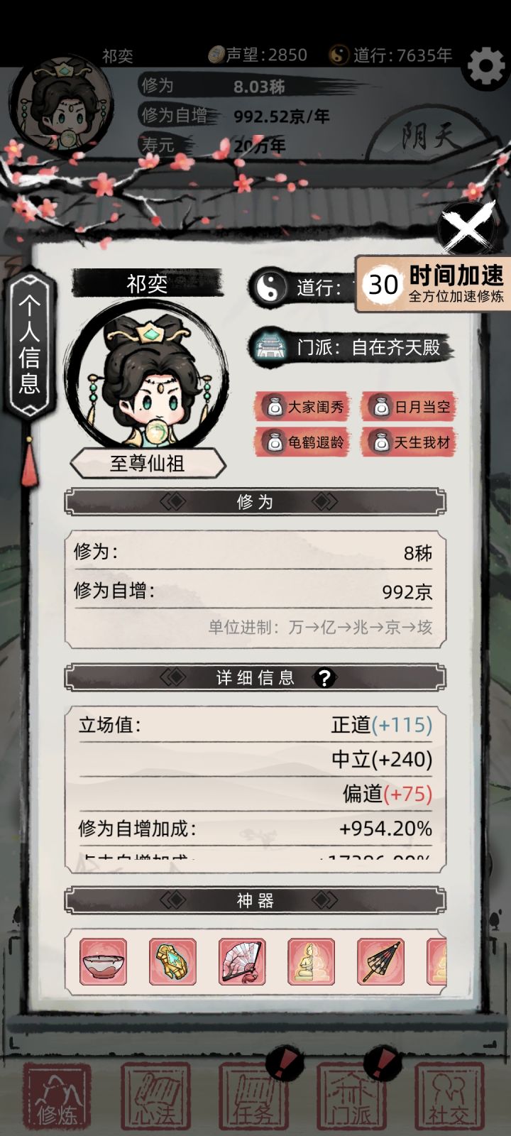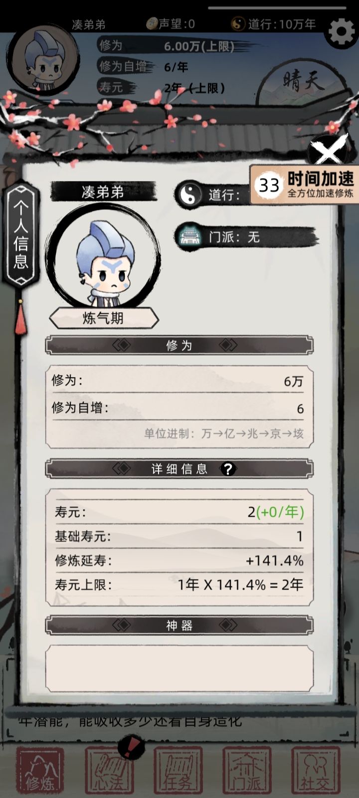 第一步:开局点就完事了,升级到秘能加入门派
