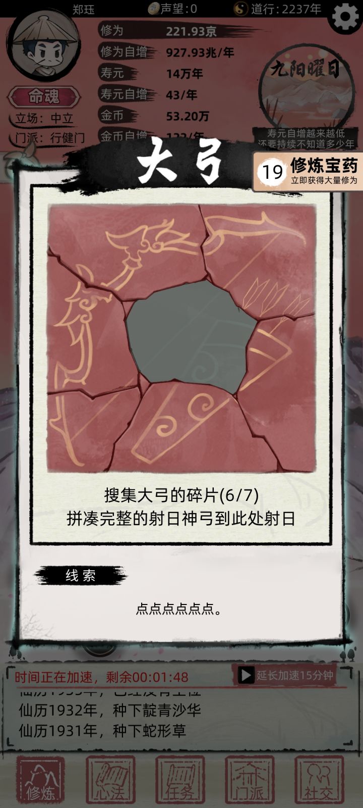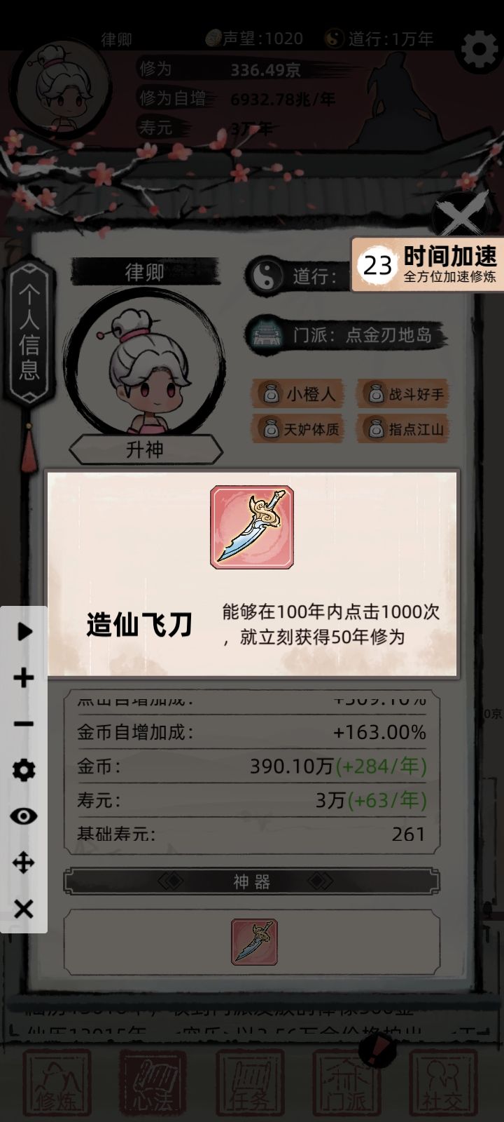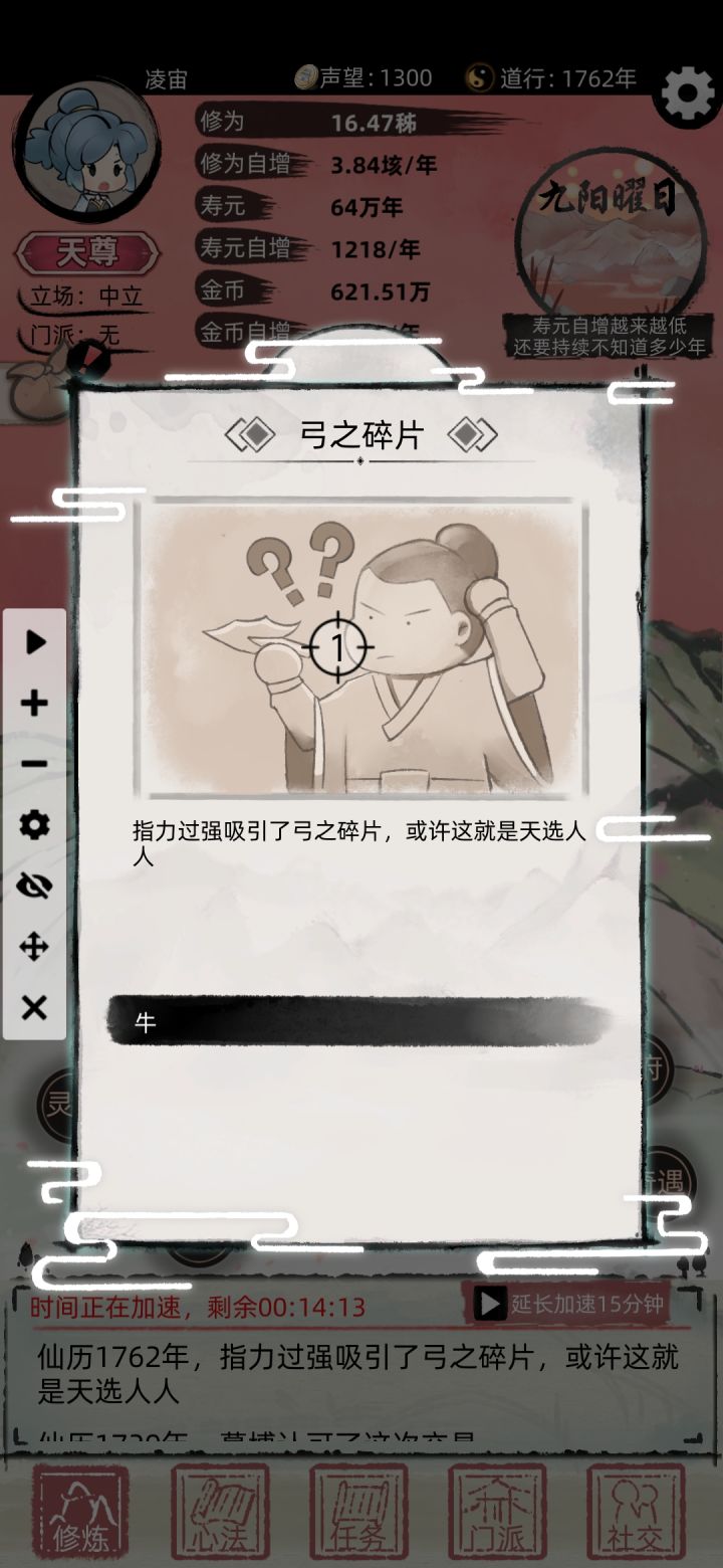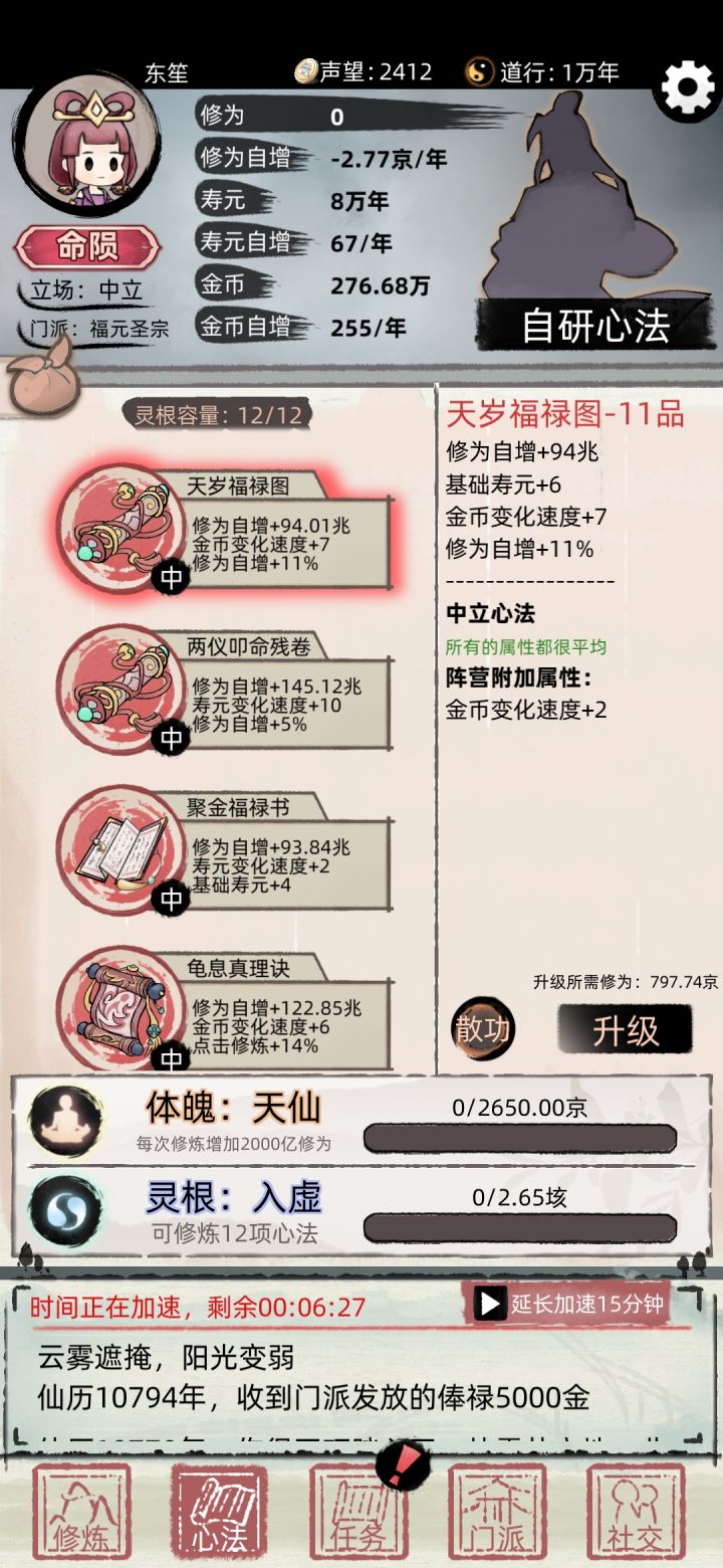 我在单身自我的时候切屏,退出去了,然后进来跳过了诞生自我 直接就进来了,而且还显示挂机了21600年。 直接嗝屁,有一样的嘛。我刚到的十重天,就这么结束了😅