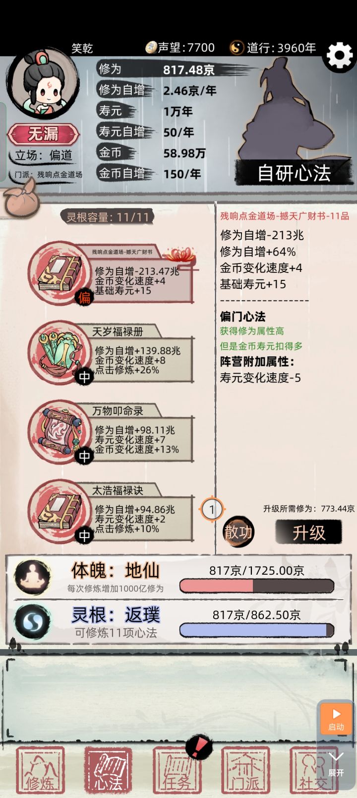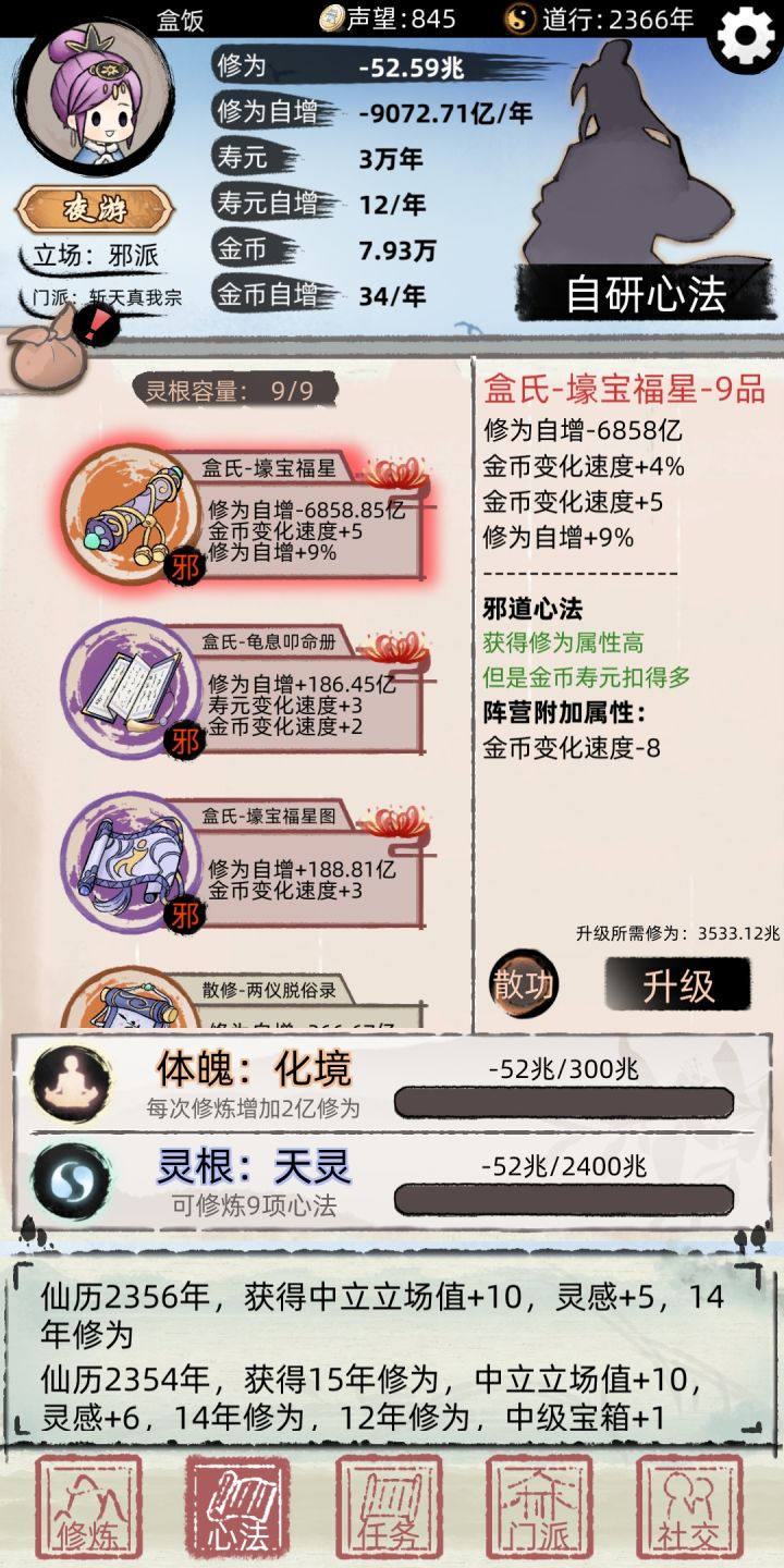 修完总修为自增负的bug 现在是功法修为负职
