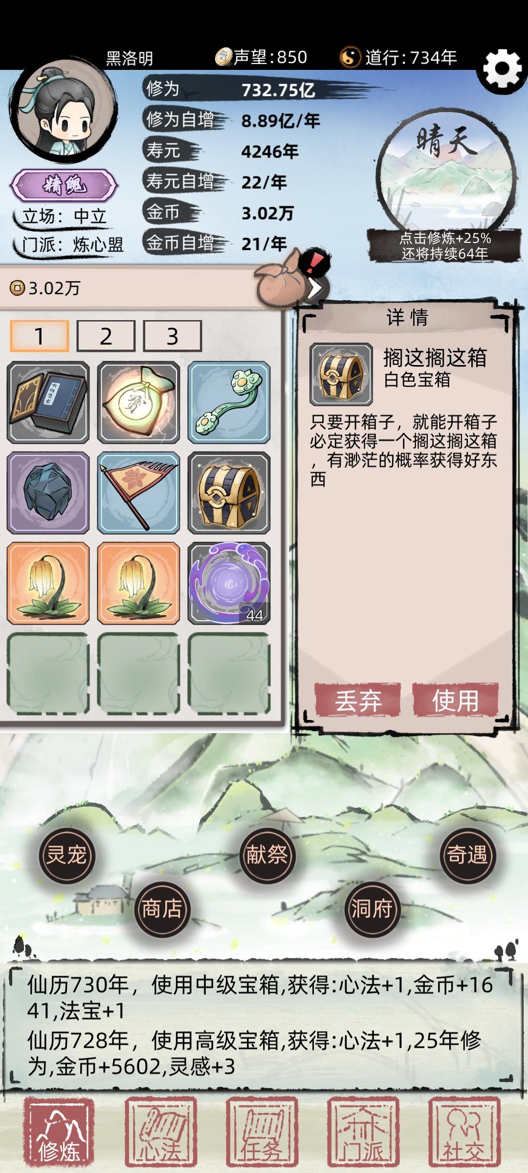 想反应一下问题,更新后,宗门的百宝阁显示有问题,我加入宗门后不管是多少品,百宝阁点不开(显示凡品)。商店的商品更新也是更新时总卡在剩一年更新。还有就是加入宗门时总是不能一下子加入,需要退出重进才能显示,是我手机问题还是版本问题・_・?