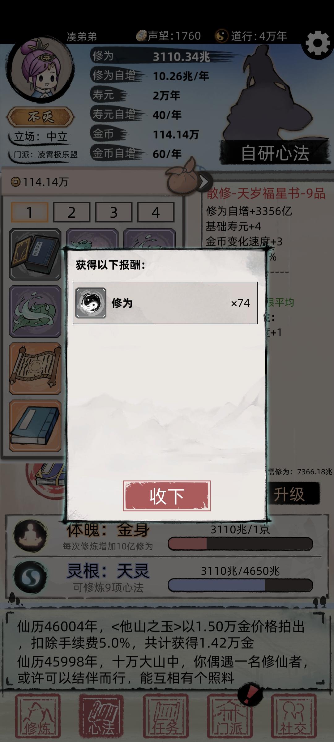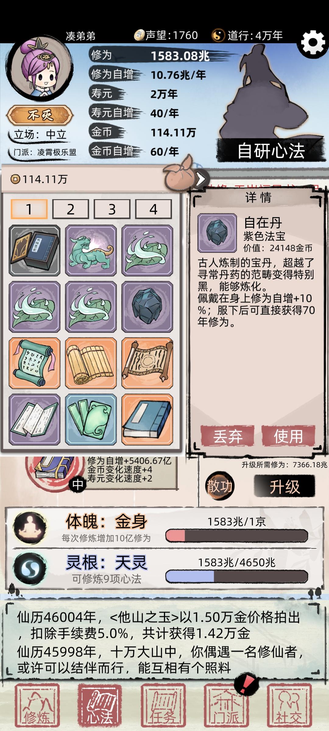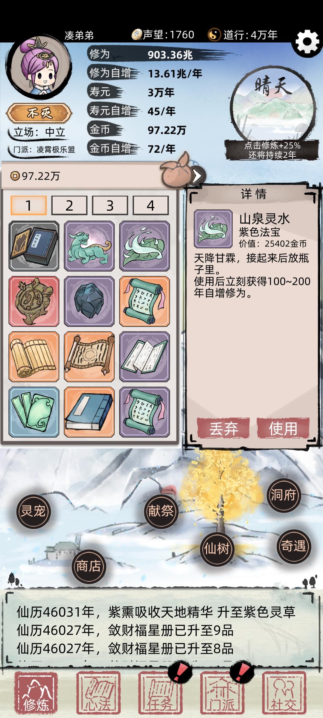 新版本那个山泉灵水不是100~200年自增吗,用完之后都是60、70多自增。还有那个自在丹加的太少,上个版本三百你这直接削短腿变成70至少也要150啊,最后的话提升太慢了正常一个点左右,可现在直接1个半点