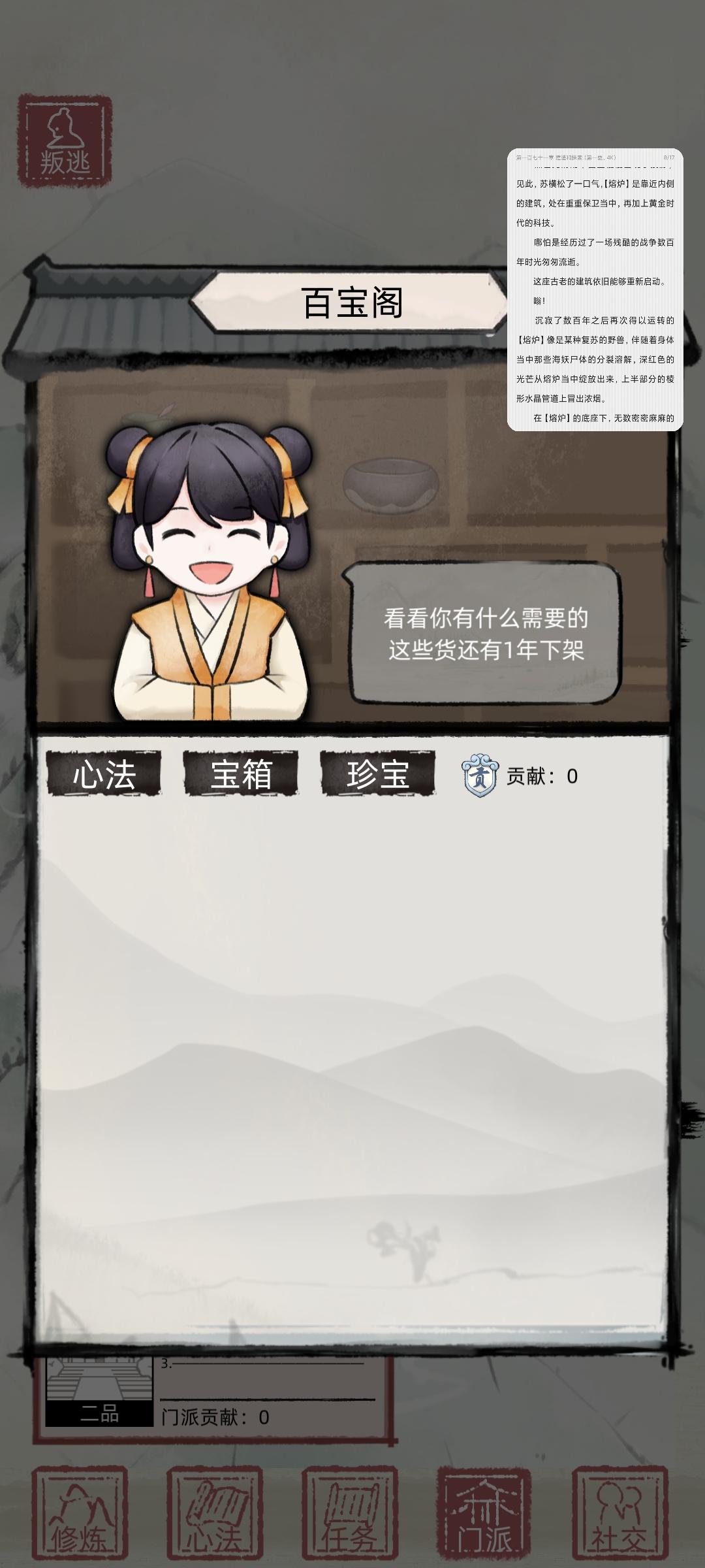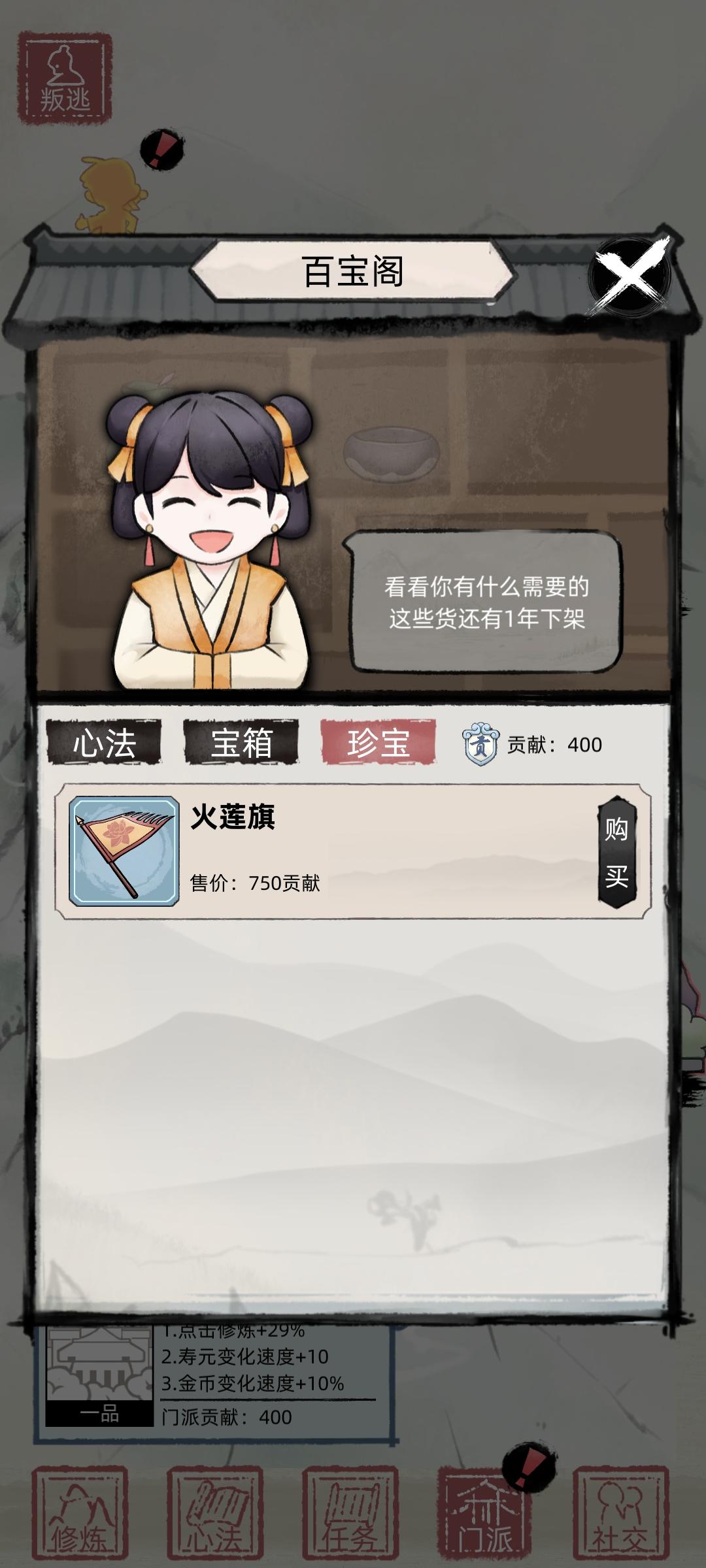2个bug,一个新入的宗门商店到时间不刷新一直卡在1年。宠物点击散步出现白块