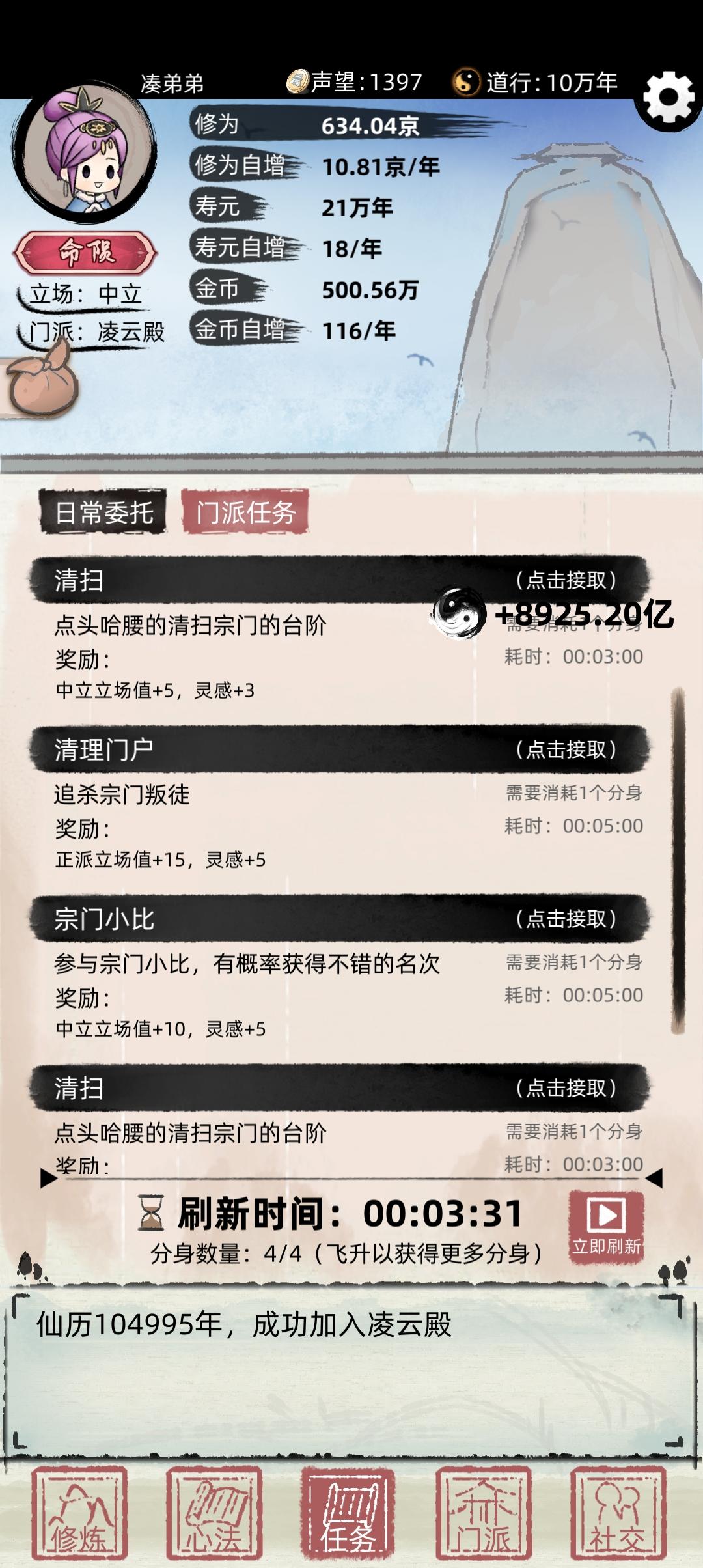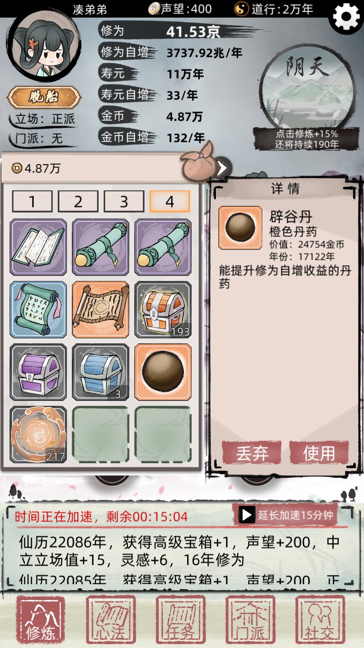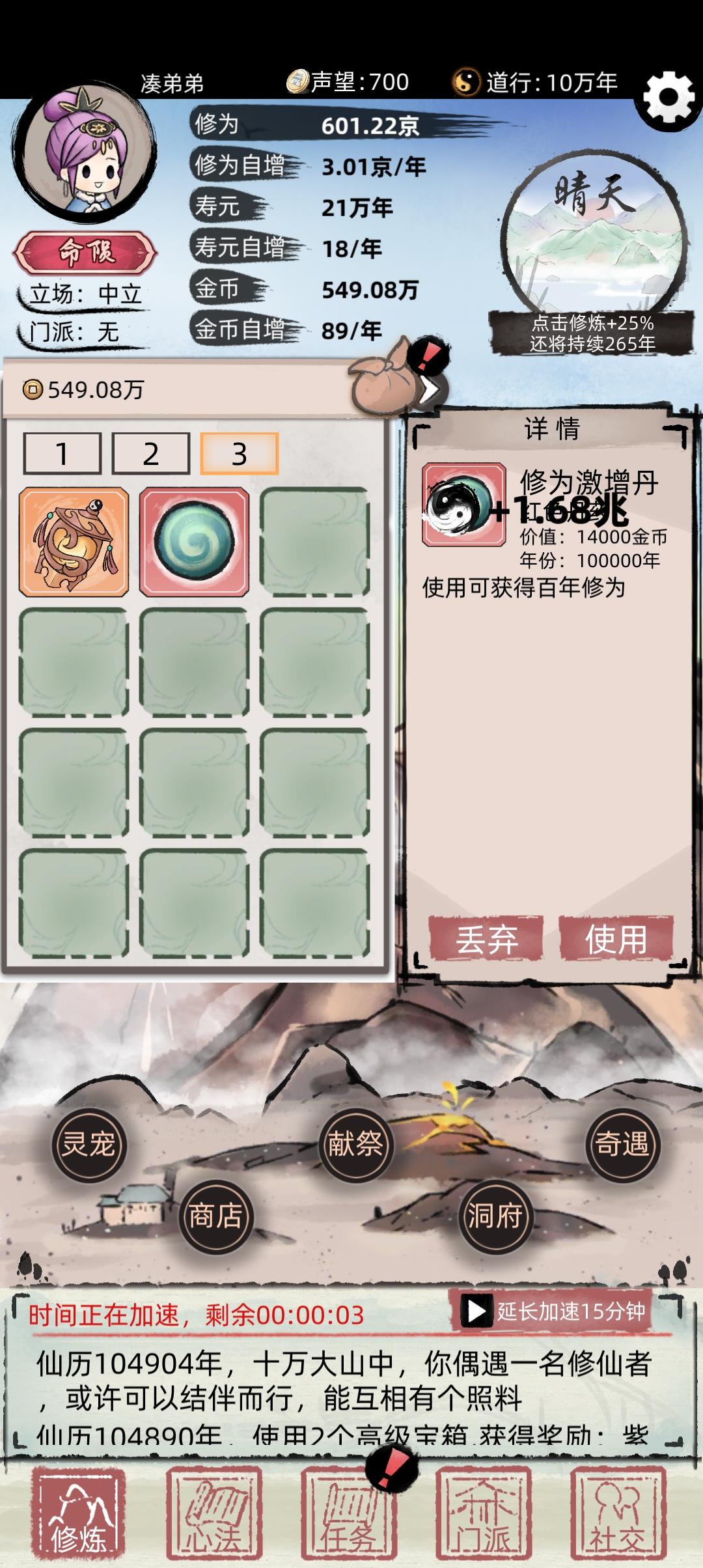 更新完以后,一直弹看广告给百年丹药,自在丹不香吗,看个屁的广告,你给个千年万年还能接受,拒绝了还弹,之前还觉着广告少挺好的,你在这么弹可要打低分弃游了。