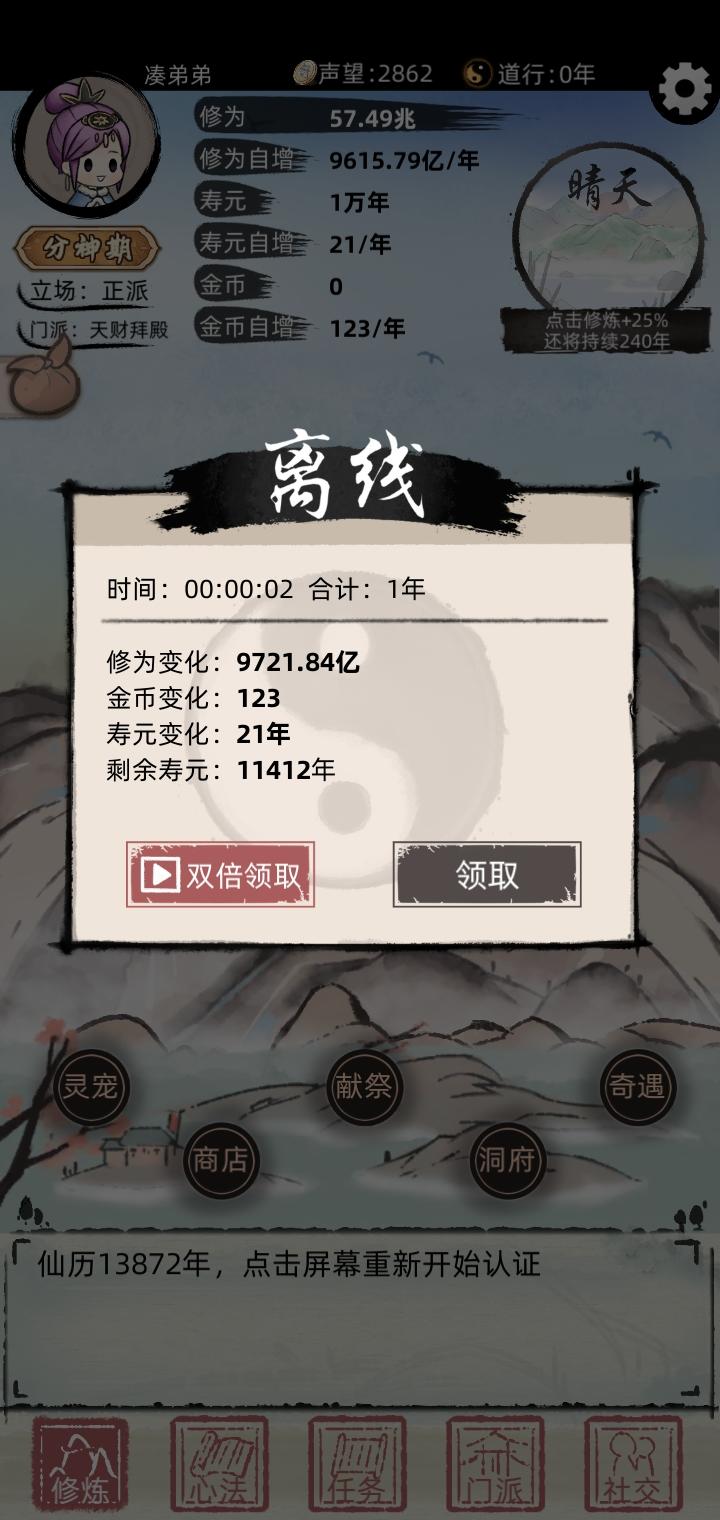 唉~ 什么时候才把那上线离线收益才两秒的修一下~ 一点游戏体验都没有