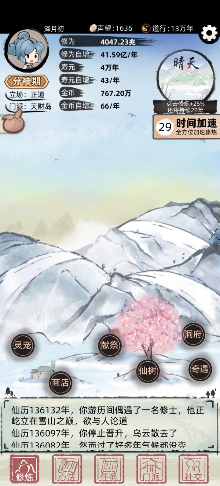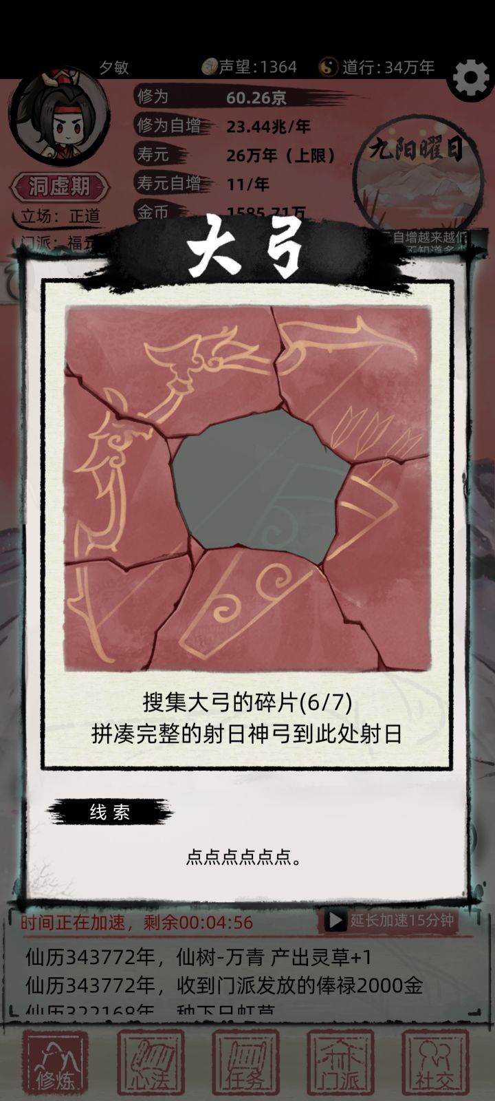 #不一样修仙2 #不一样的修仙宗门2 #不一样修仙世界2 不是,这就没了??我还有那么多神器还没有领呢?不是不是这这这,我才玩两天多一点啊。希望官方能更新快一点吧。哎!才10重天。。。。。境界有些乱。很多不合理的地方。最高境界,至尊仙祖太没排面。