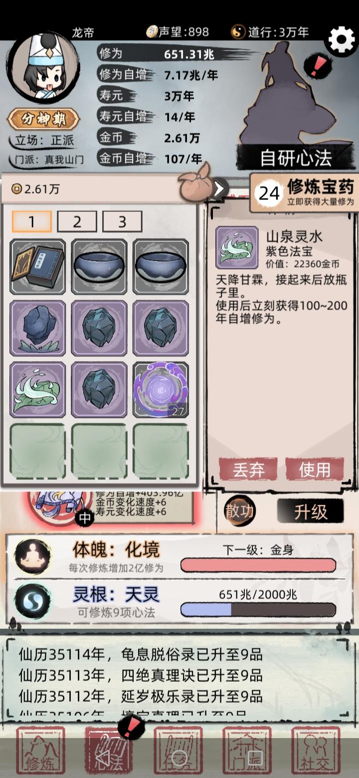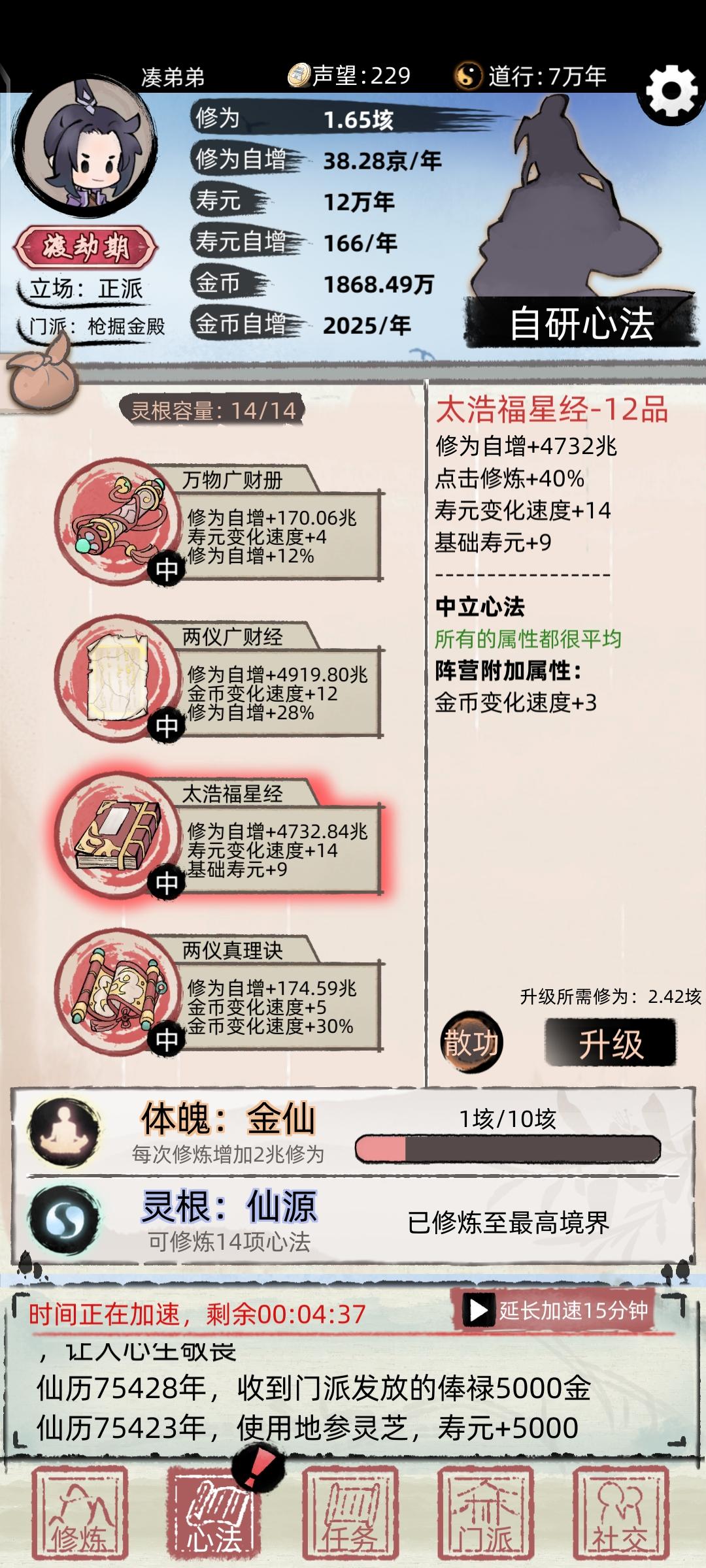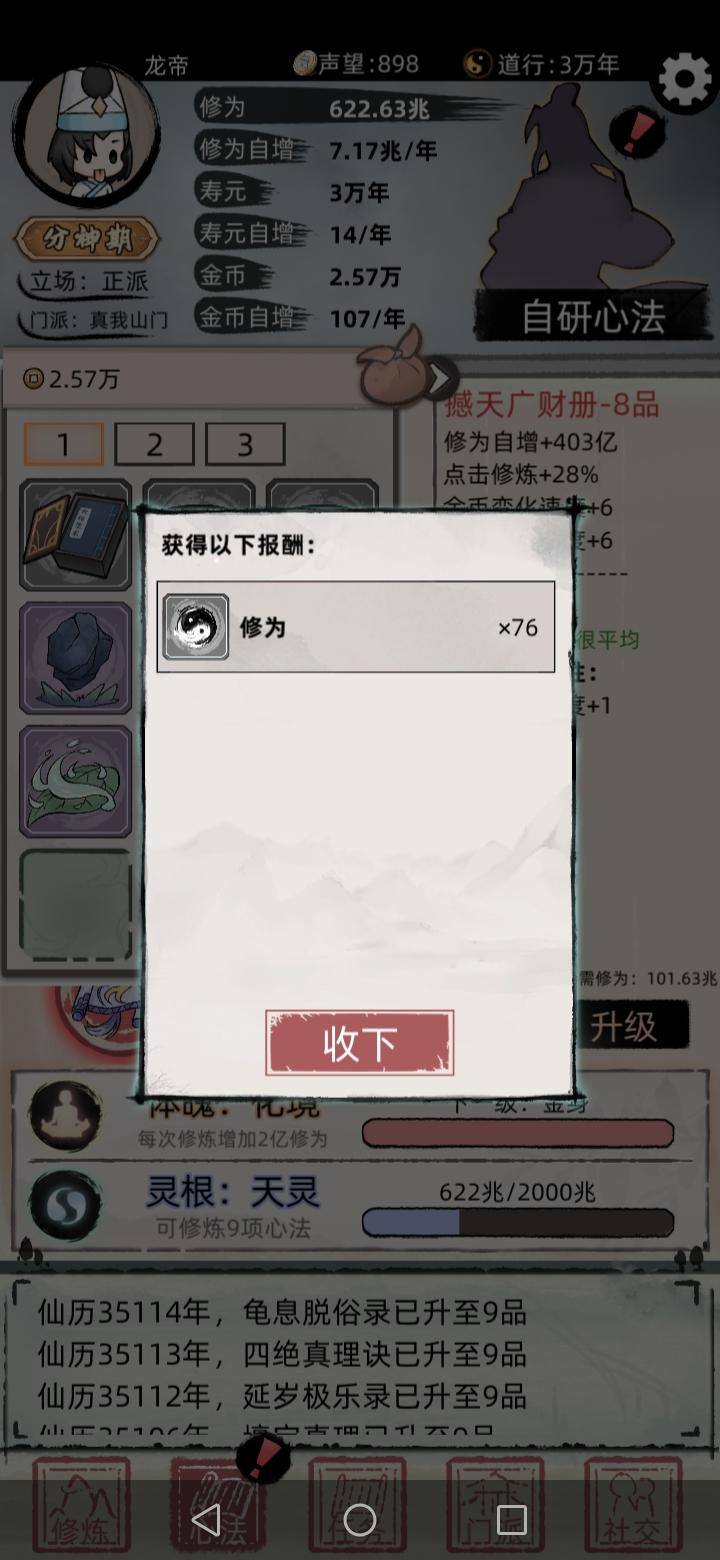 升级宗门 宗门特性没变化 药物药草服用收益和拍卖收益差的太多