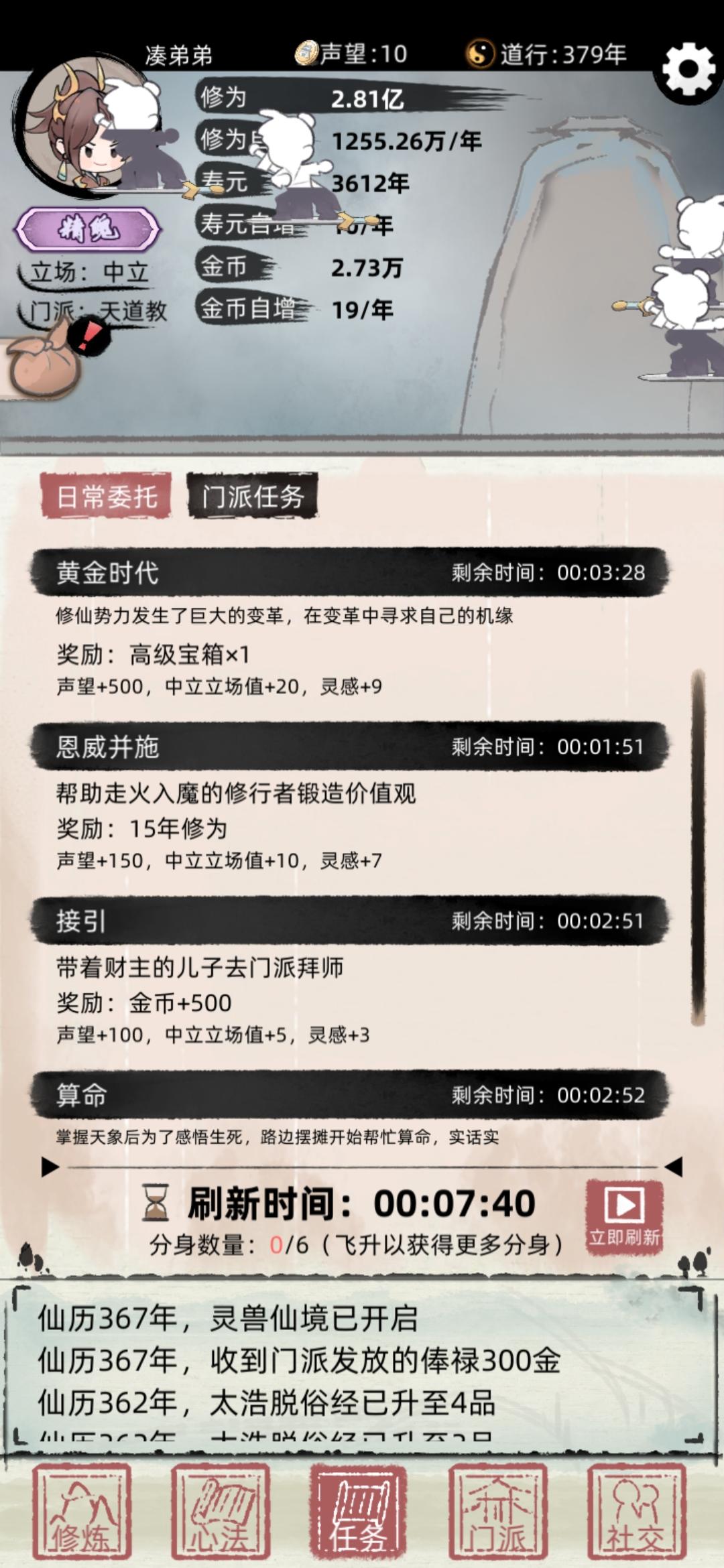 怎么说呢,你自己不刷新任务让我看广告刷新是不是不太好。任务做完了退出游戏等多久都看不到刷新的任务服了