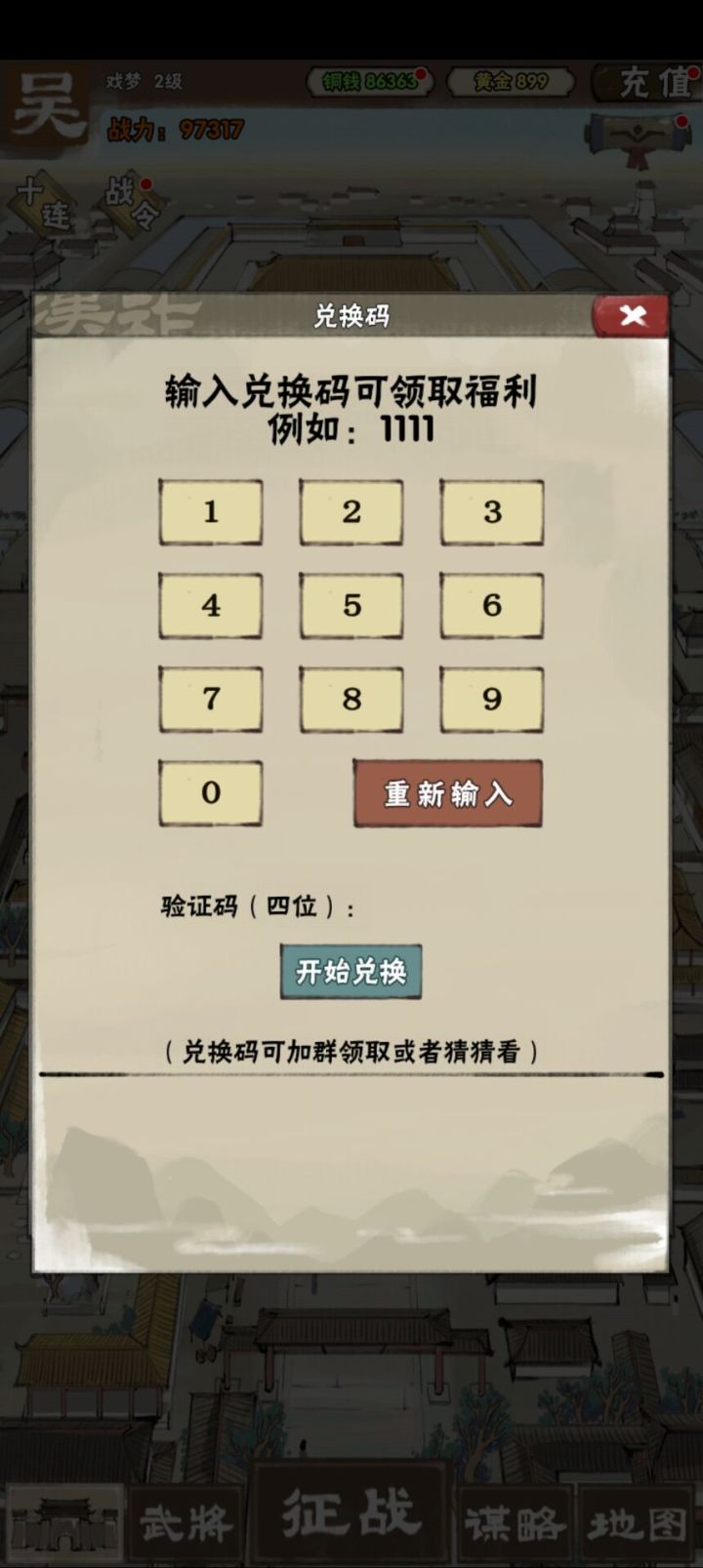 已找到的兑换码1111 ~ 9999 95277755207740961060202213145200343410242048………左上角点击国家 - 点击【猜福利】,即可进入兑换码界面哈 (这个活动 通关2-1开放哦~)其他君主找到的可以发出来分享下哈================ 评论建议&加标签(三十抽到手)==========主公们应该都知道怎么加了