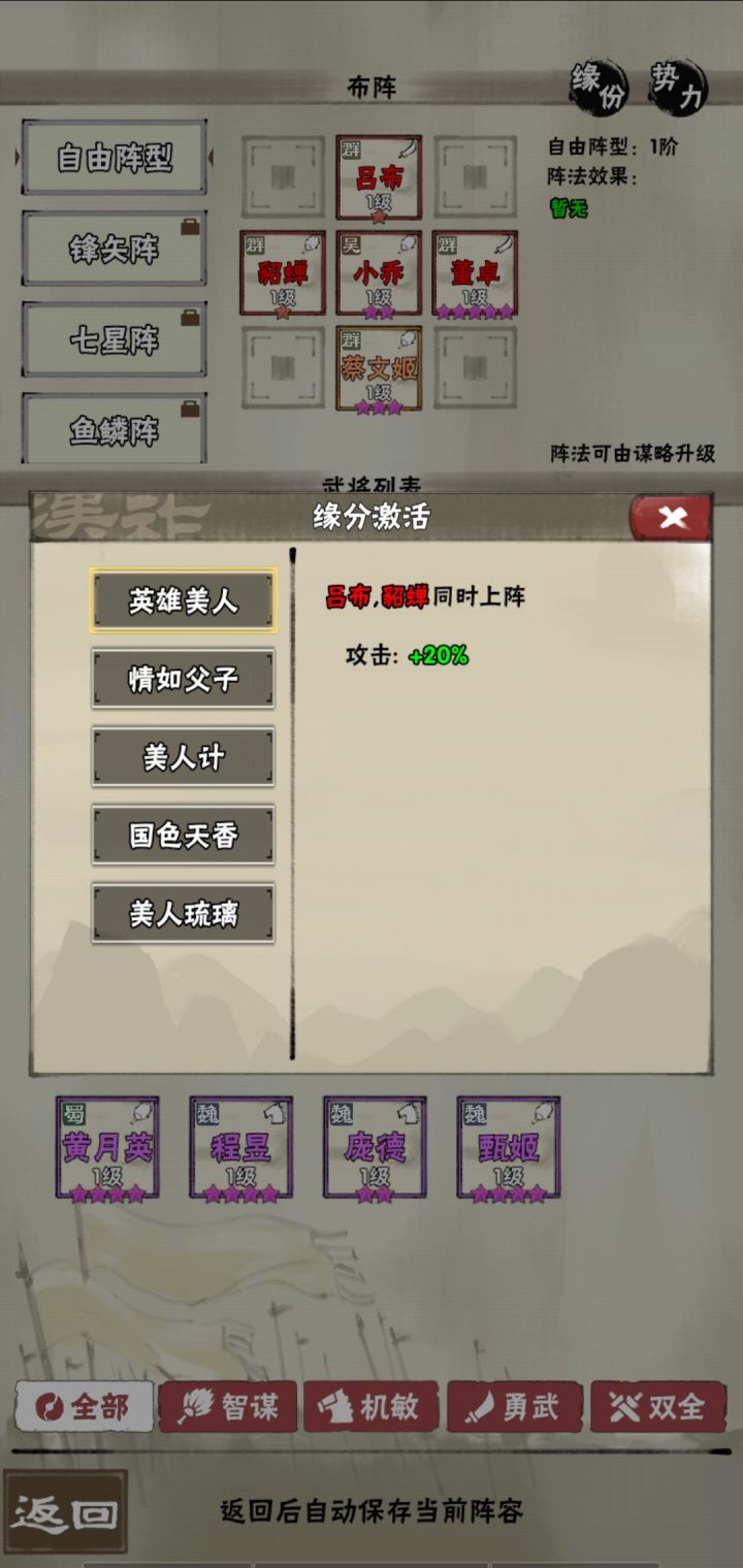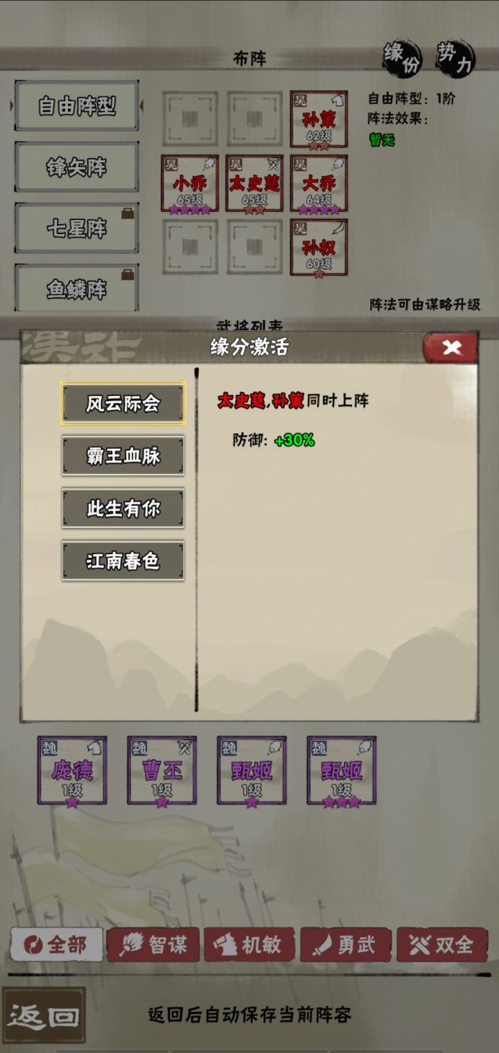 原本是想以 群雄 吴蜀魏 按4套阵容出来。 后来脑子疼。就随便弄了其他的。这种几乎可以直接拿去用了 。加成什么的我没有写上 感兴趣拿走可以自己看看。