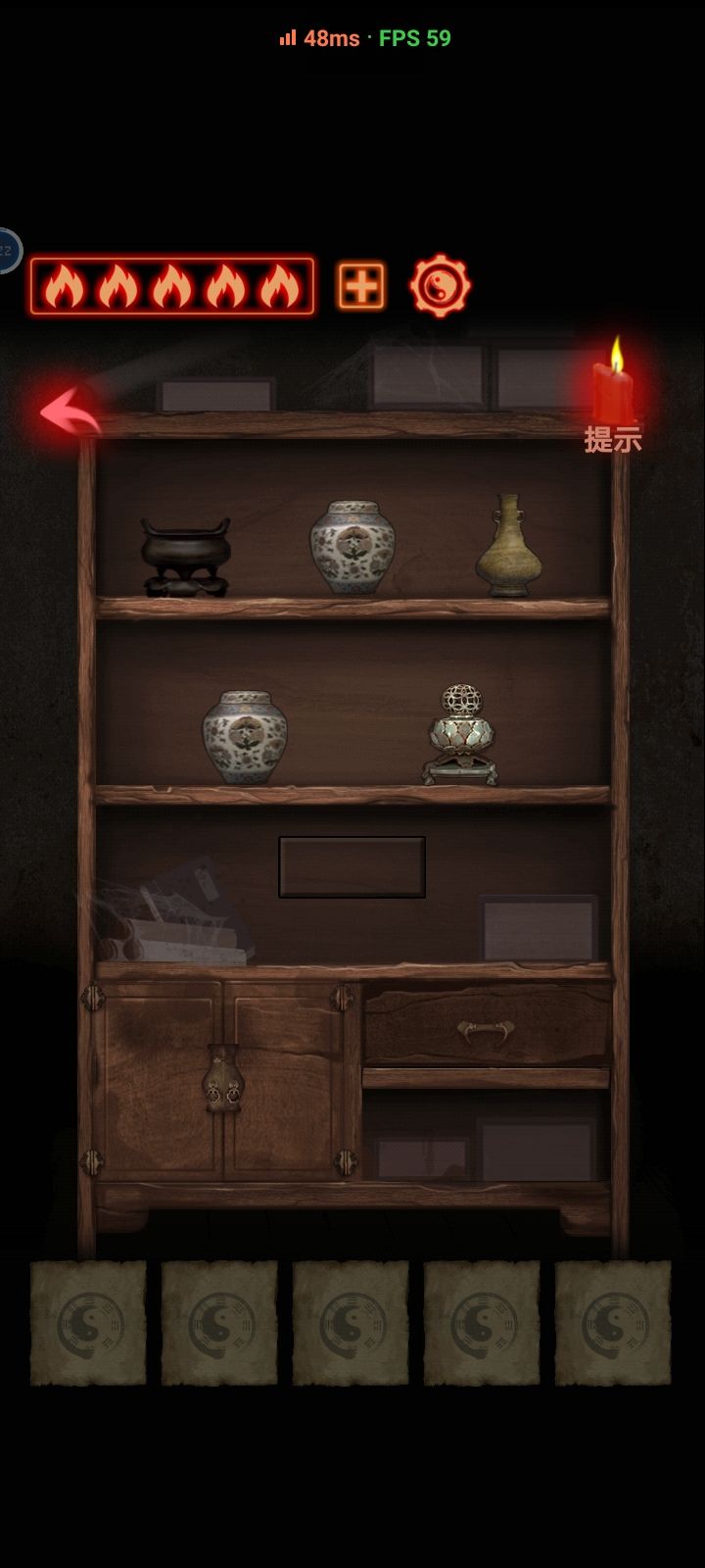 第一章密室里的五个按钮的柜子,我以为是按照日历上年月日去解,结果是月日年(我认为的),当时试这个答案是想着直接忽略红圈里的年,然后加上了底下的5,没想到开了,不知道开发者这里的想体现的原理是啥,然后木偶的头部不是很好点到,希望可以优化一下;第二章书架上的书的顺序,没搞明白为啥那样排;第三章祠堂的灯笼,不理解为啥灯笼是从右往左算,灯笼上的文字又是从左往右,不如干脆统一一下方向;第四章的喷泉下的按钮,