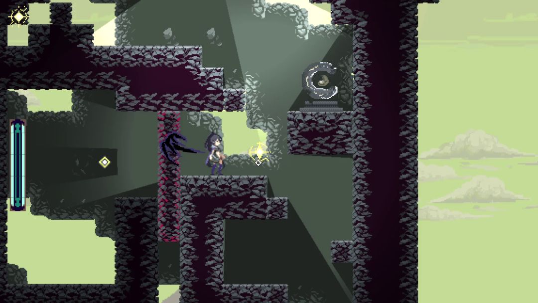 第一张图机关不动。第二张图右边感觉地形和背景色差可以改大一点。1.后期希望可以有镜子(反射光线)。玻璃(折射光线)。。。。如果后面关卡有的话我冒昧了。2.可以加上小地图对已经探索的地方3.加上多存档位置?还是叫什么,可以存多个不同的档4.加上脱离卡点按钮(光线交叉的地方容易卡住)5.图上位置如果先开了黄色机关后就降不下来了emmm,所以我要读档,但没有时间点更早的档可以读。所以有了建议3。