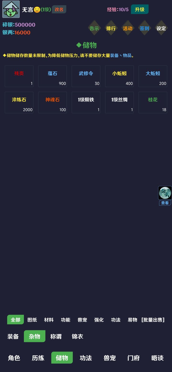 我的传言不见了,好几个功能不能用,储物也打不开,点了就闪退