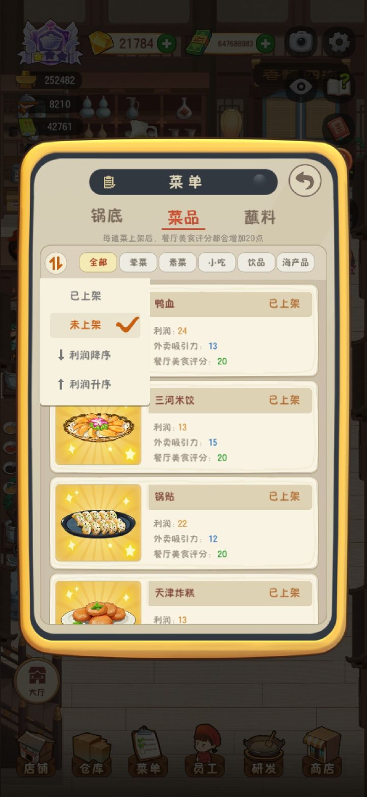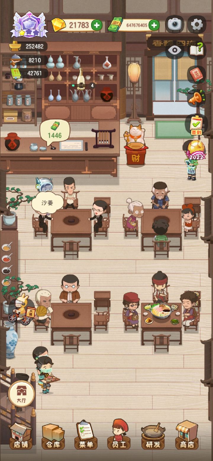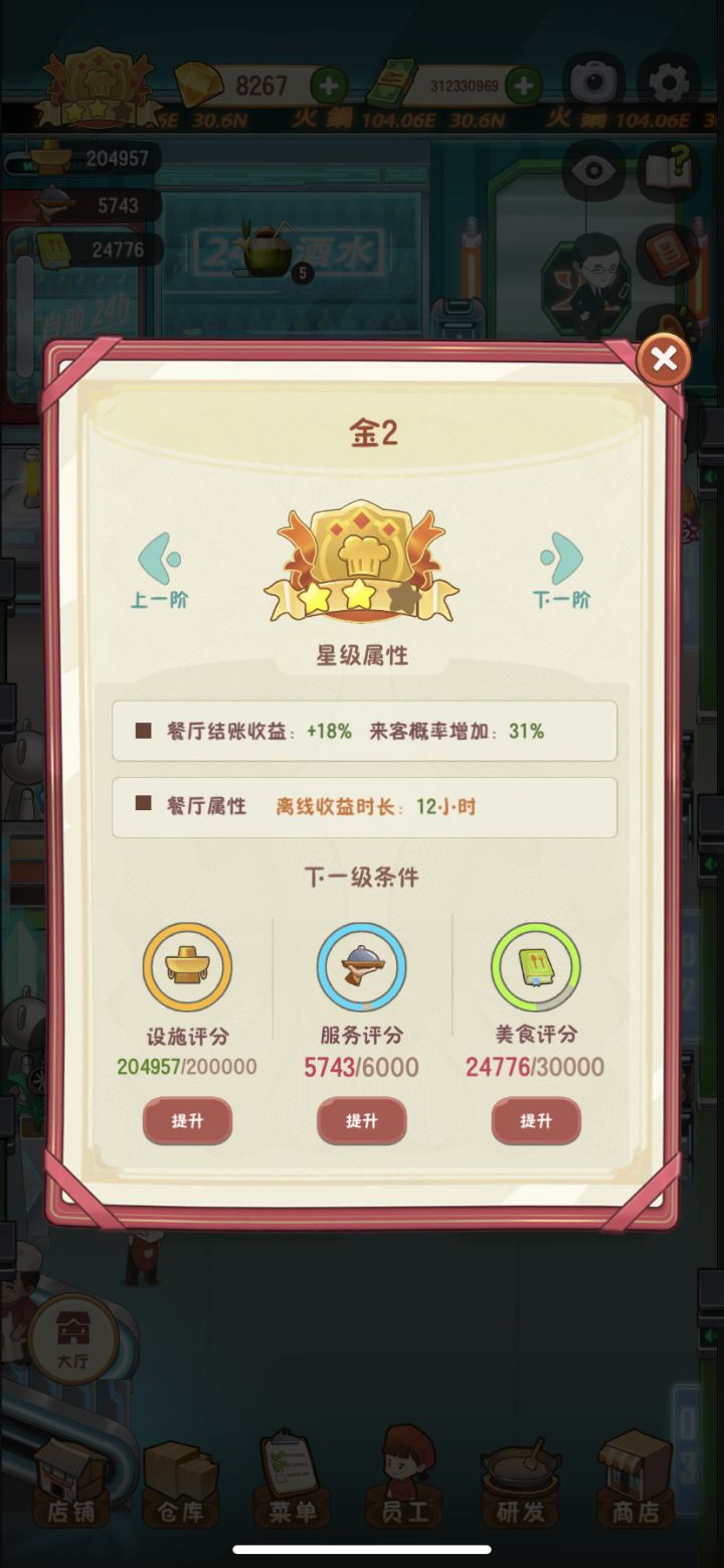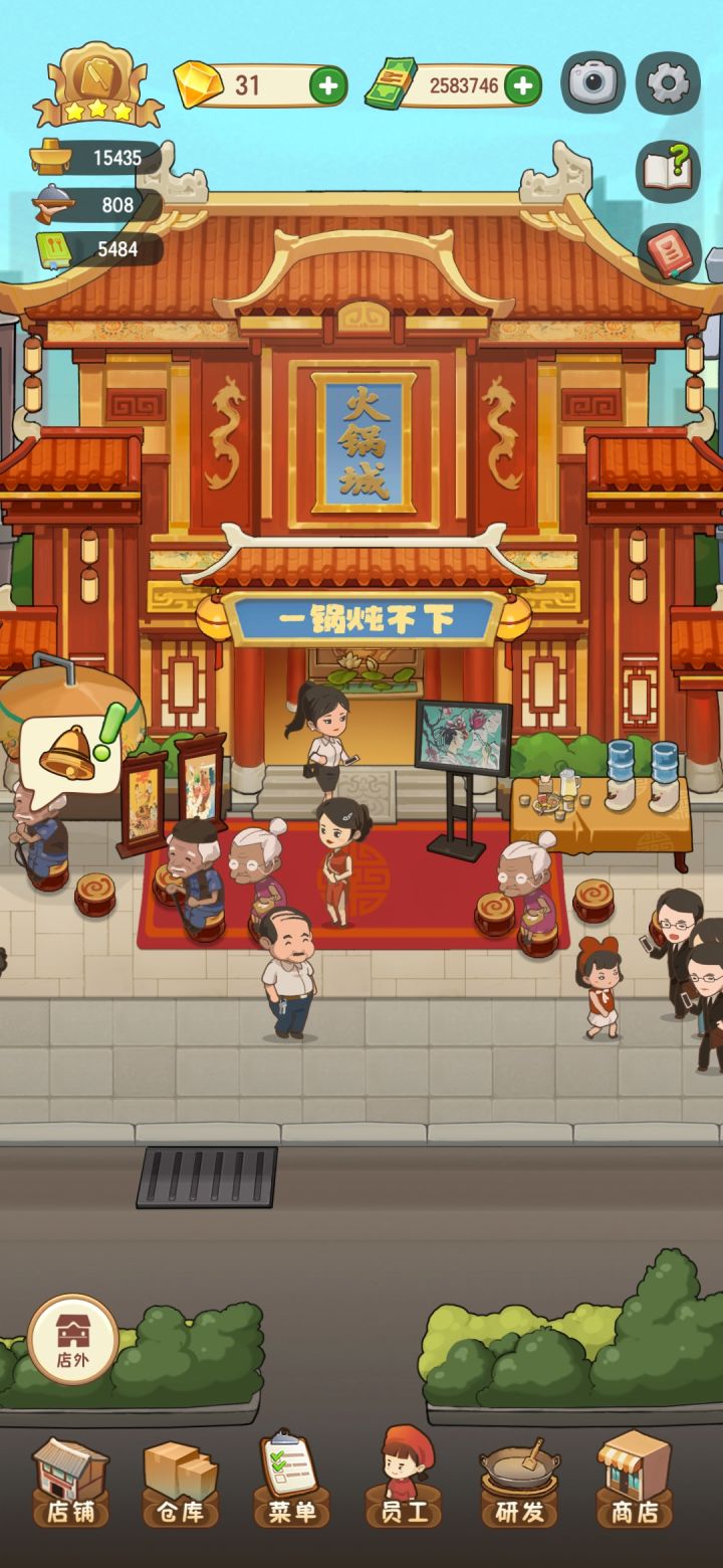 玩了三天,全部解锁,无限看广告,买材料合成,看到更新以为有新玩法了,然而没什么变化,无聊了,通关,等待继续开发,壮大我的火锅店,一锅炖天下。