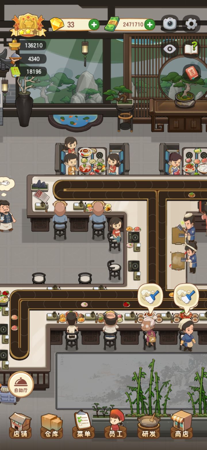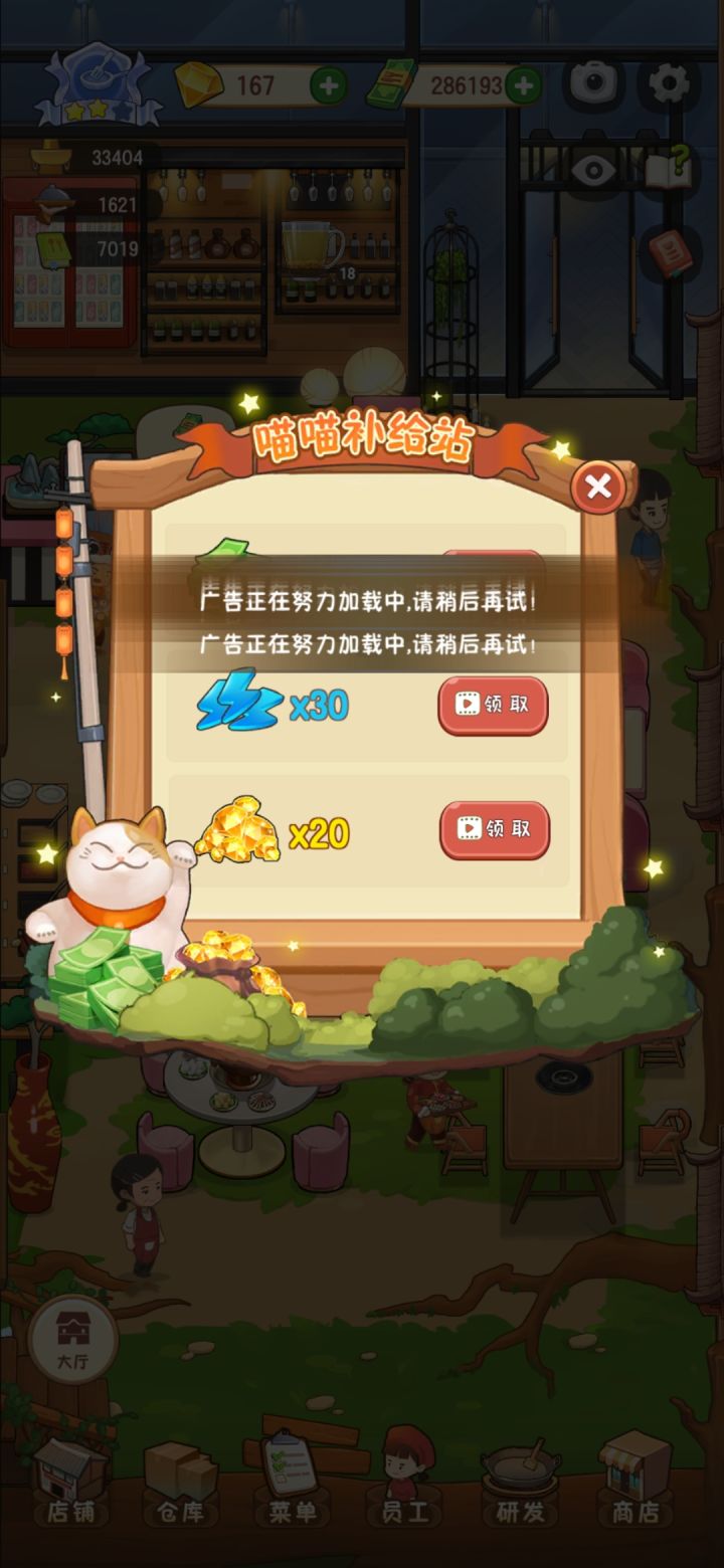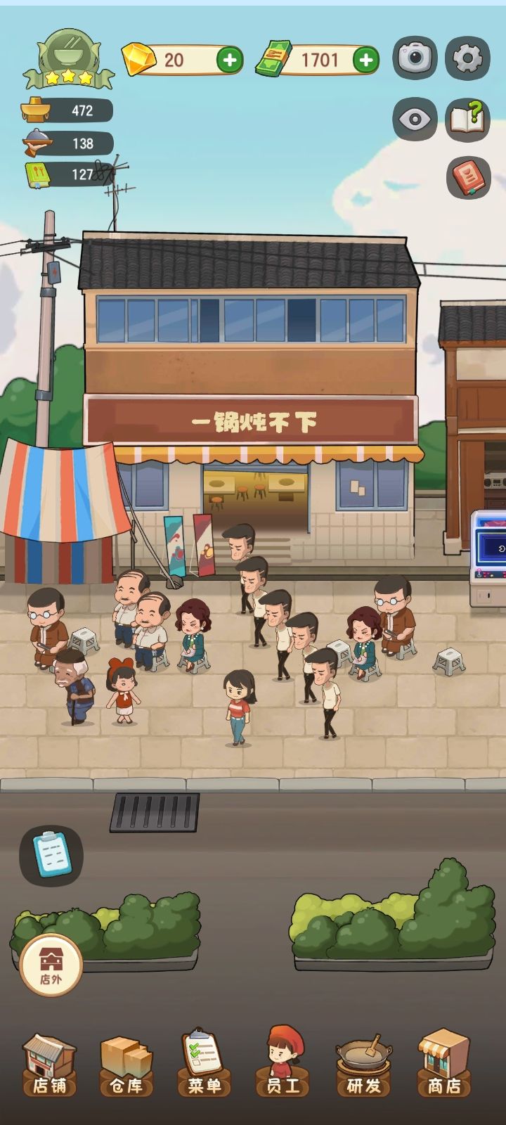 怎么说呢,游戏感觉和画质都不错,但我是个新鲜感过的特别快的人,一旦游戏有一点点让我觉得麻烦无聊就不会继续玩了。嗯就感觉什么都难弄,能量 体力 金钱都要看广告,餐品升级简直了,戳到我痛处了根本刷不到我就刷出来9个锅底眼瞅着就铜三了,要啥啥没有,卸载了