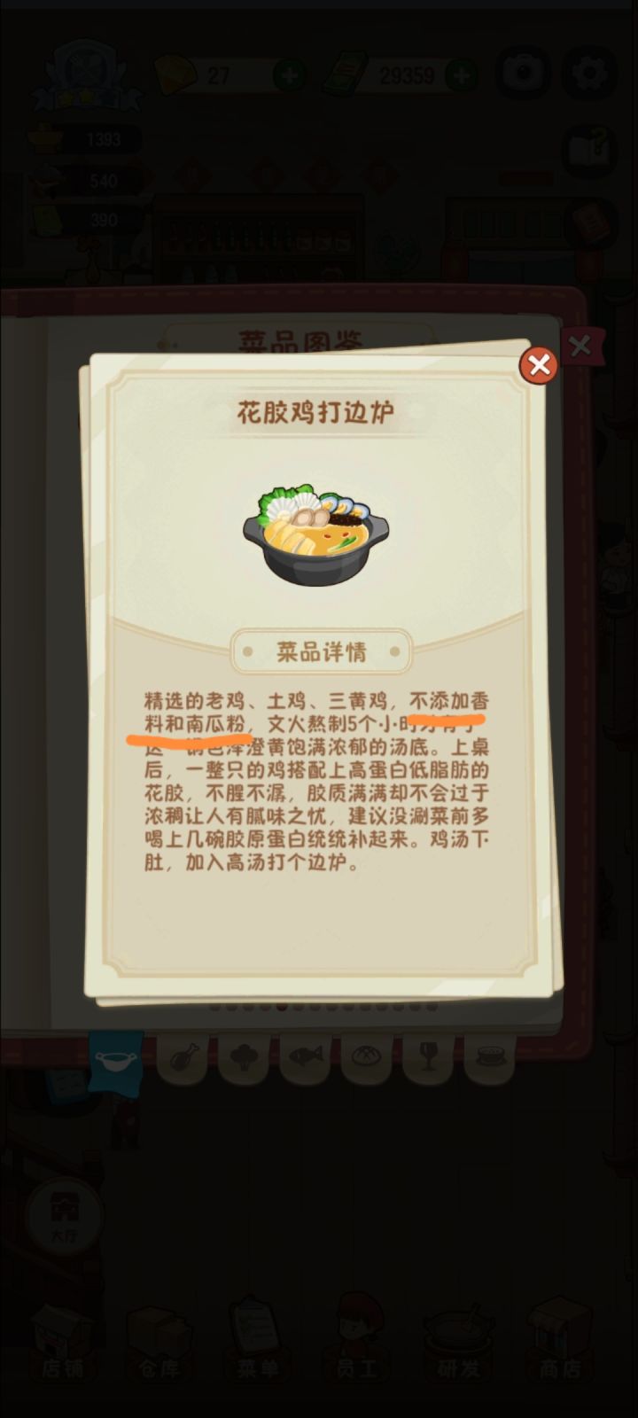 所以,我这个汤底到底有没有南瓜粉?南瓜粉是偷工减料才加的吧,应该不加南瓜粉,真材实料熬出来的汤底才正宗。图一是菜单里面的描述,图二是菜品图鉴里面的描述。图二我感觉少了个逗号,原句是“建议没涮菜前多喝上几碗胶原蛋白统统补回来”,个人觉得应该是“。。。多喝上几碗,胶原蛋白。。。”