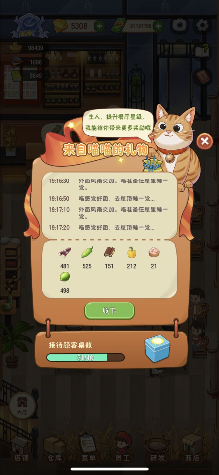 三个元素集齐了,五次抽全是重复的菜品,给补偿的四叶草也很少,都不够我换一个菜的。。。。。