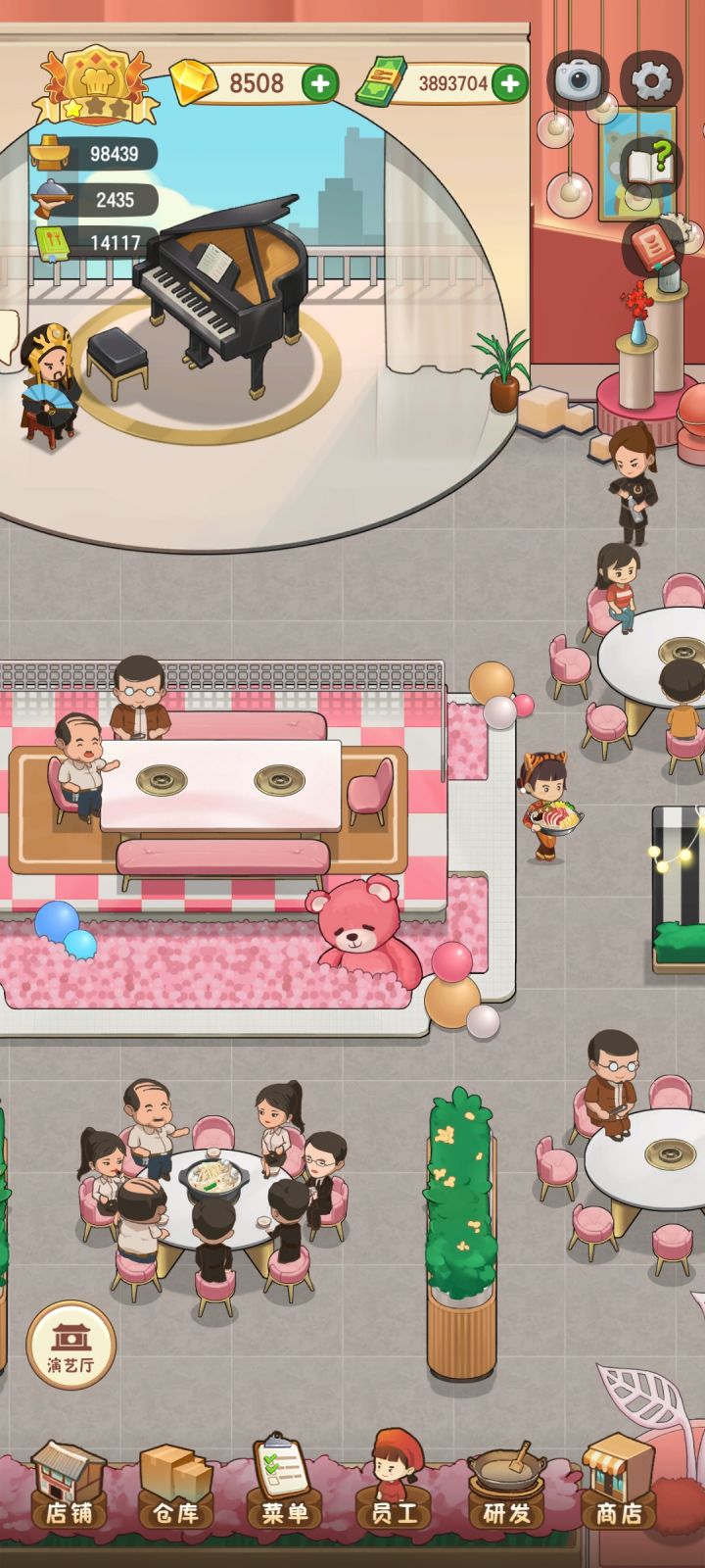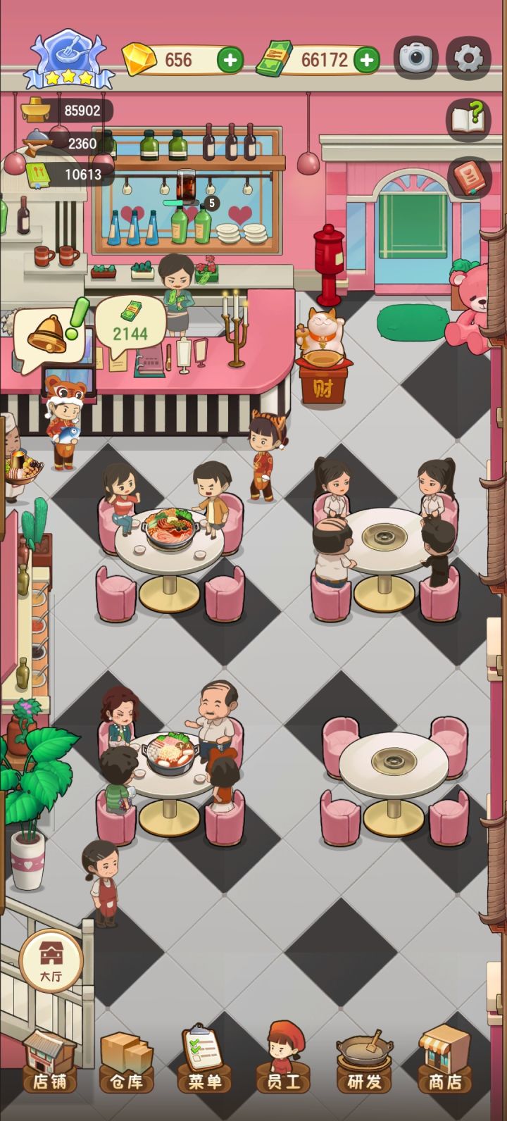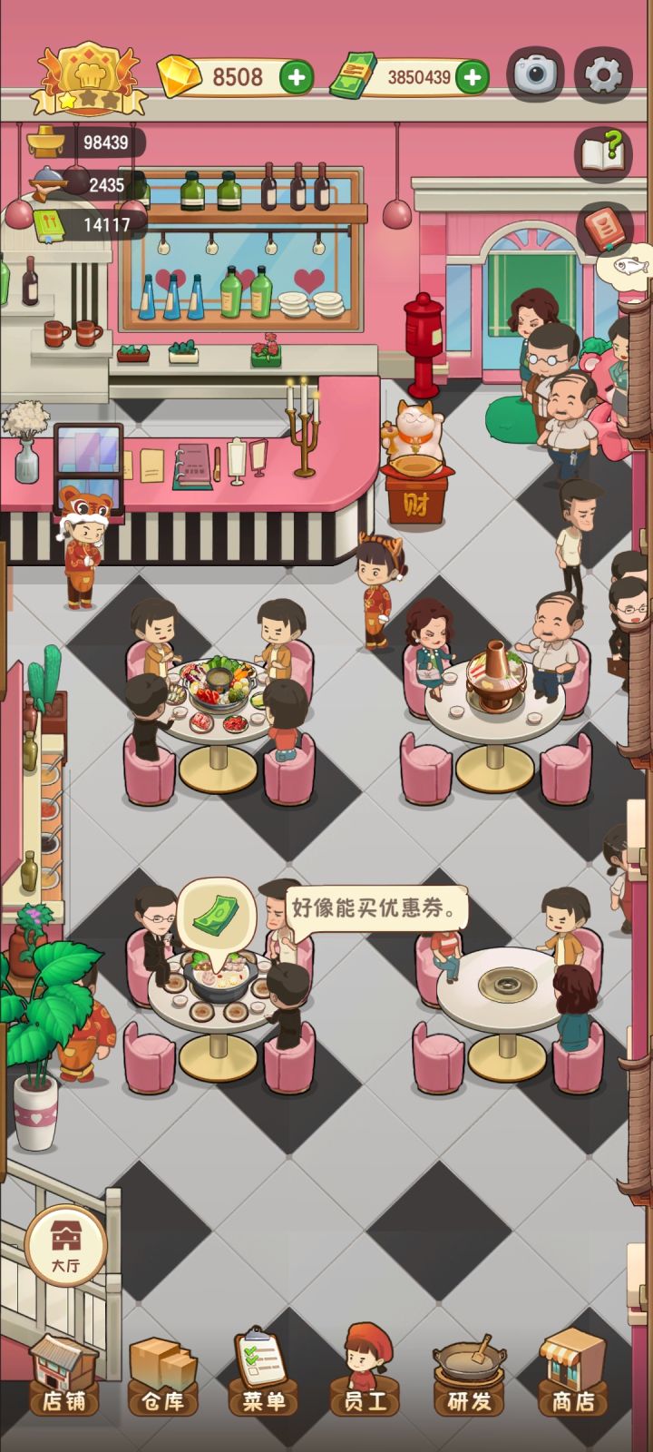 受不了了,赶紧修复bug吧!!!两个人坐大桌 包间,四个人坐小桌???客人的腿都在桌子上,厨师还出现在收银台,道具里的东西太贵了。。。