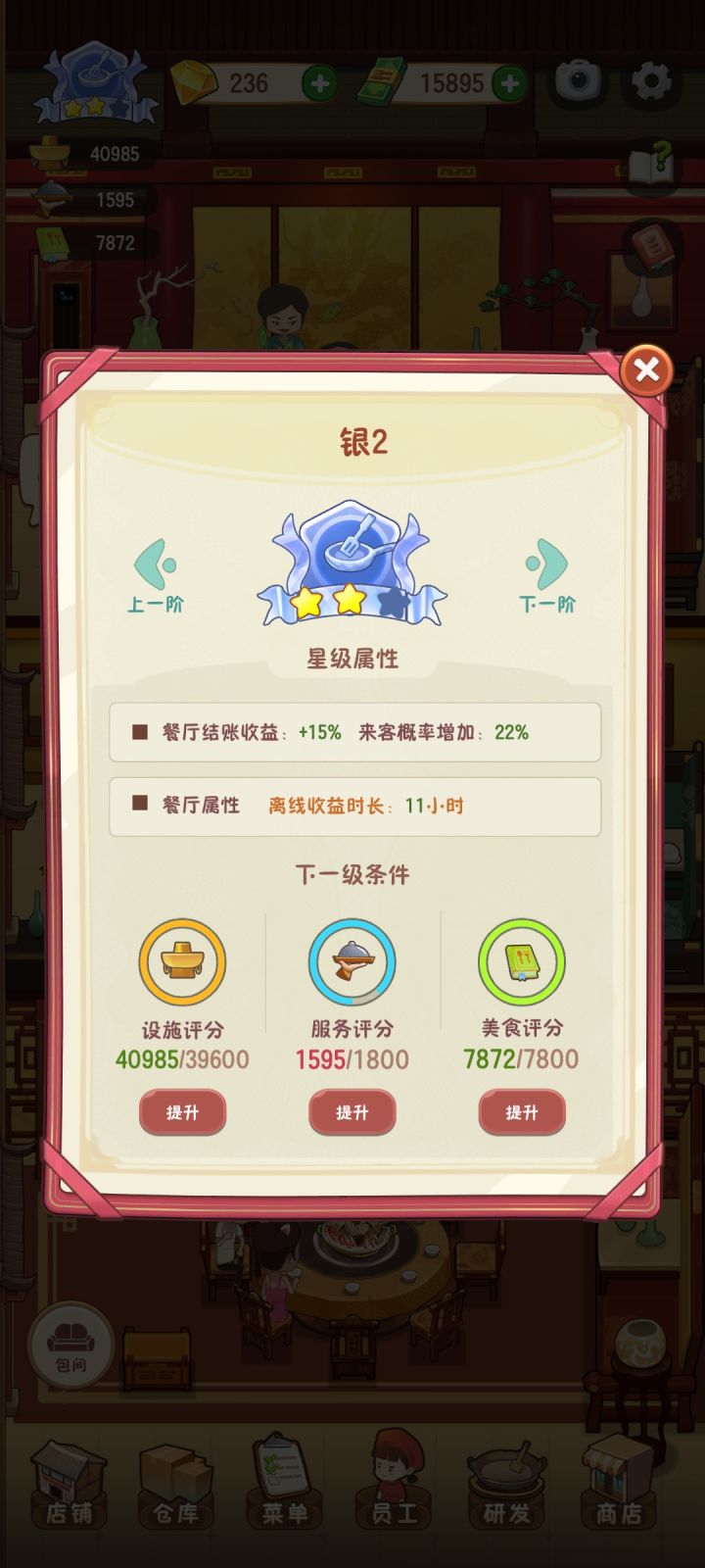 我现在是银1升级银2 设施评分不够升级不了但是我所有解锁的店铺设施都买完了 没解锁的银2才能解锁