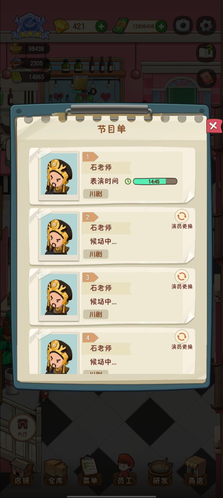 出BUG了,安排冷老师表演,结果全是石老师,点演员更换重新选择冷老师之后也不变。。。