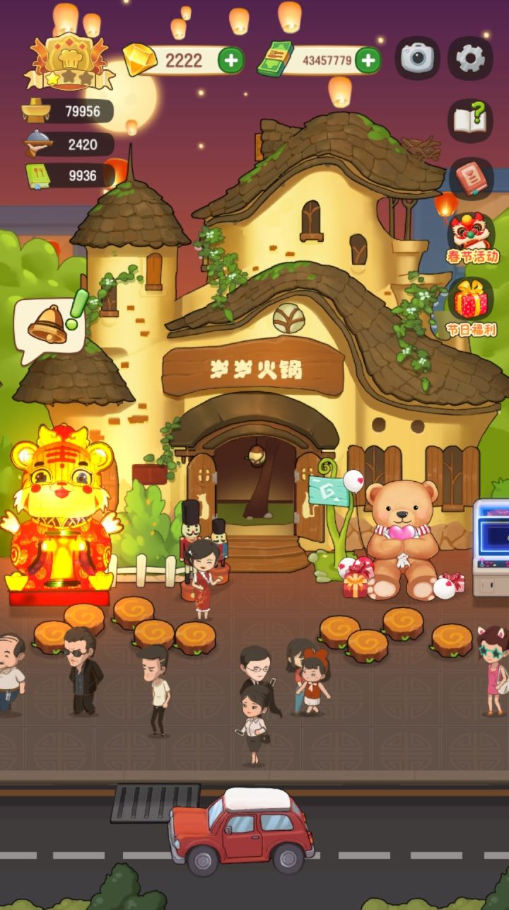 个人感觉与其你只多更这几个员工不如直接弄一个人才市场,每天可以花钱招来新员工,想换一批就花钻石或者看广告这样也行。而且我后厨装饰都拉满了只做锅底还是很慢,建议添加专门熬锅底的师傅,而且我觉得比大厅只弄四桌未免有点少了,在真实的火锅店人家也是散桌比包间赚的多,散客也应该更多,建议增多一楼大厅的散桌。还是希望官方能把游戏做的更耐玩一些