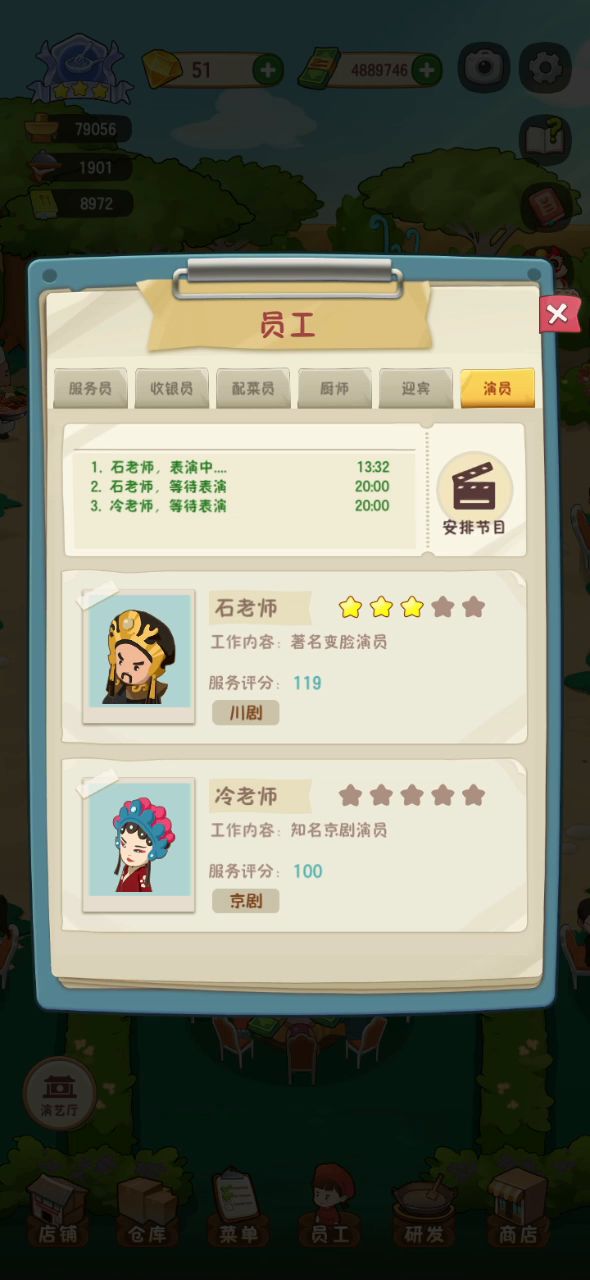 你们这设计就是用员工手册强行卡游戏进度啊设施可以用钱买挺快,菜可以很多渠道合成所以也不慢,员工手册不能钻石和钱买,只能一天游戏出50-60个,菜重复了换几本,看看每个员工升级需要多少手册,一天的量只能省几下就没了,知道等版号不容易可是三个评分中这个服务分这也太不平衡了
