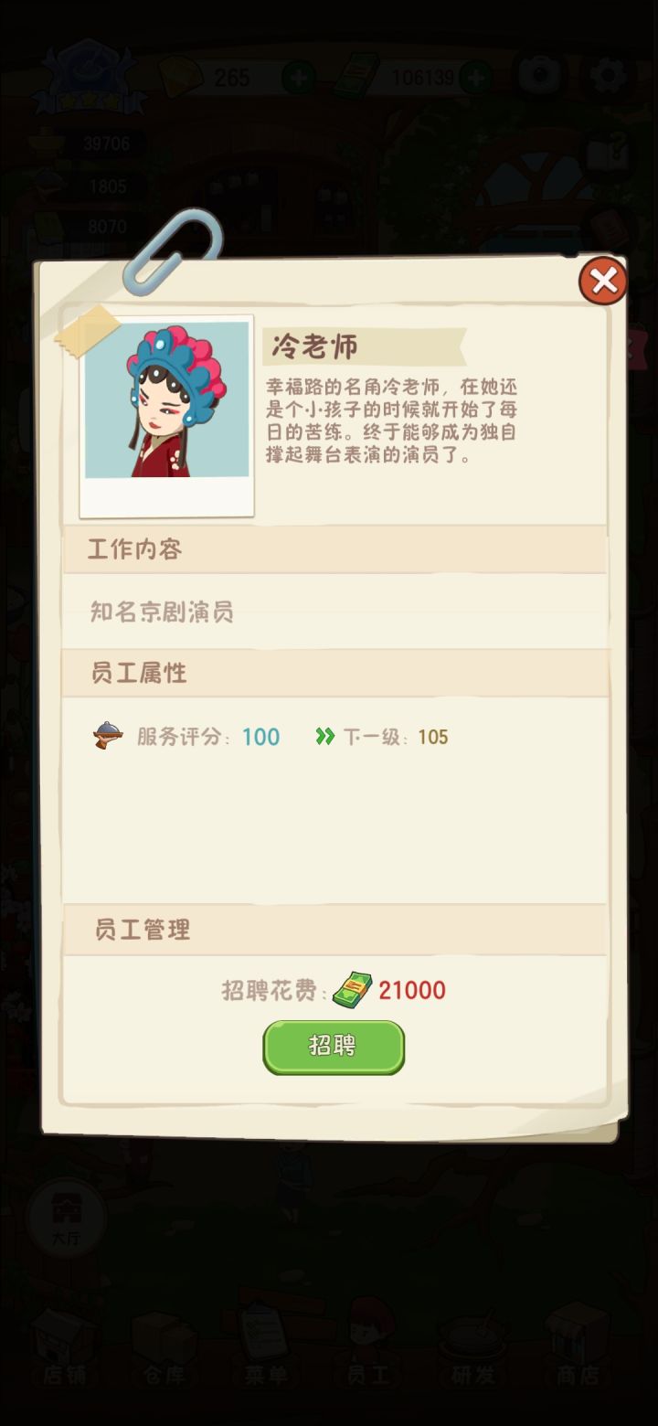我想知道多余的这个币是没有用了吗?所有的东西都换完了。还有能不能多给招个厨师,切菜板是真的慢。