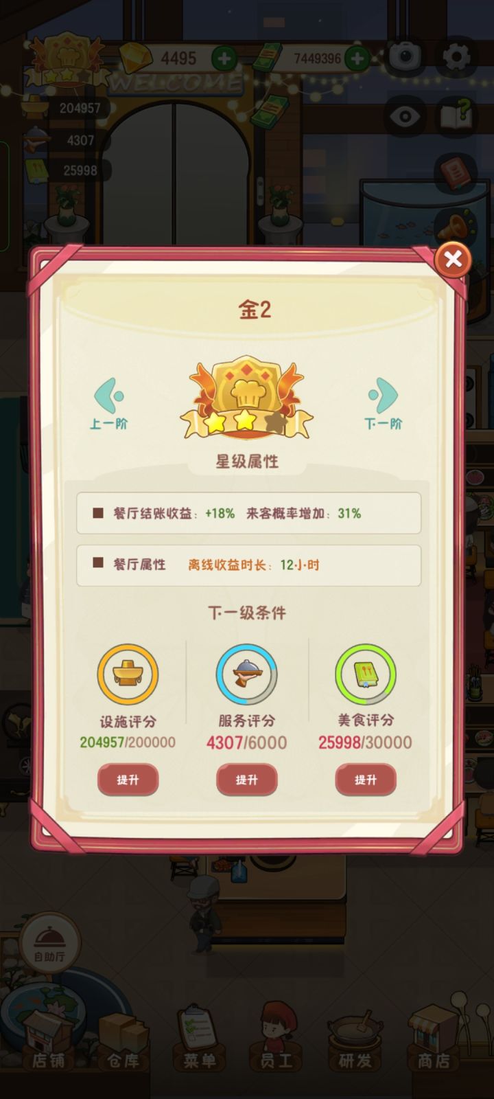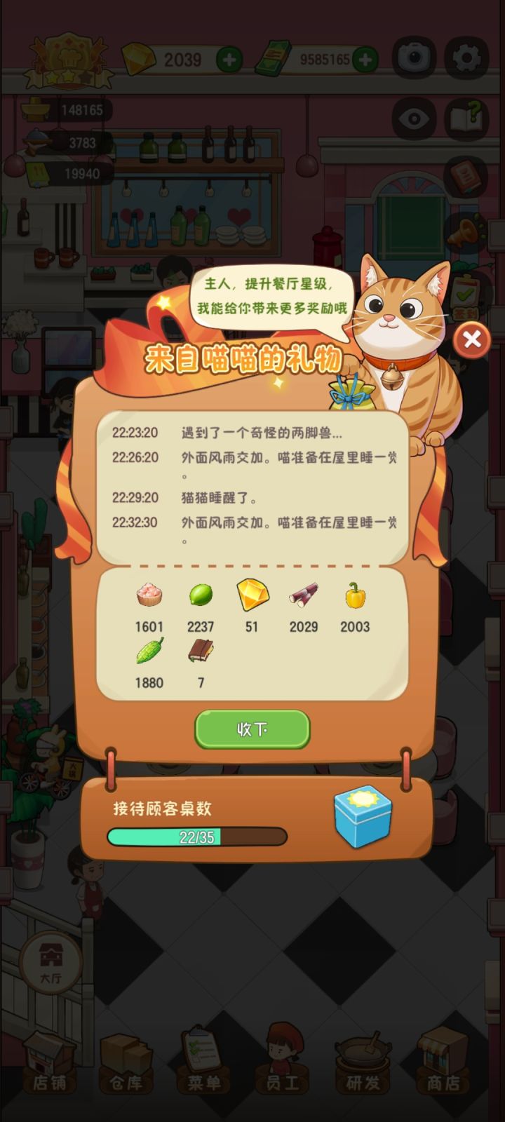 快更新吧,我除了那个3800的演员,所有的设施满级,所有员工皮肤和培训满级,所有菜品都升级完了。就等更新了!!!!!